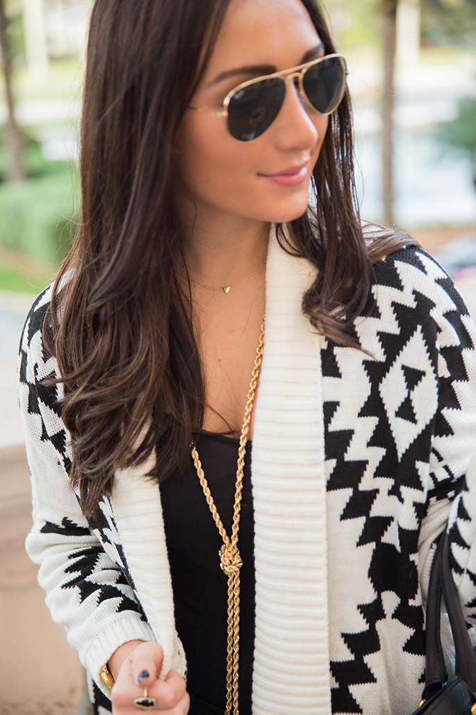 Chicwish Aztec Open Knit Cardigan c/o (currently on sale!) | White House Black Market Petite Signature Legging (fit: wearing a size xs; buy one get the second one 50% off!) | Hinge Jersey Tank in Black | Hunter Original High Gloss Boot | Saint Laurent Y Ligne Soft Leather Bag (love this less expensive black purse! totally have my eye on this baby…) | BaubleBar Iced Lariat Necklace | Lola James Jewelry Smitten Necklace c/o | Kendra Scott Ella Ring in Platinum Drusy, Ella Ring in Iridescent Drusy, Skylen Ring in Black | Michele Gold Serein Watch | Ray-Ban Original Aviator | Urban Decay Lipgloss in Lovechild