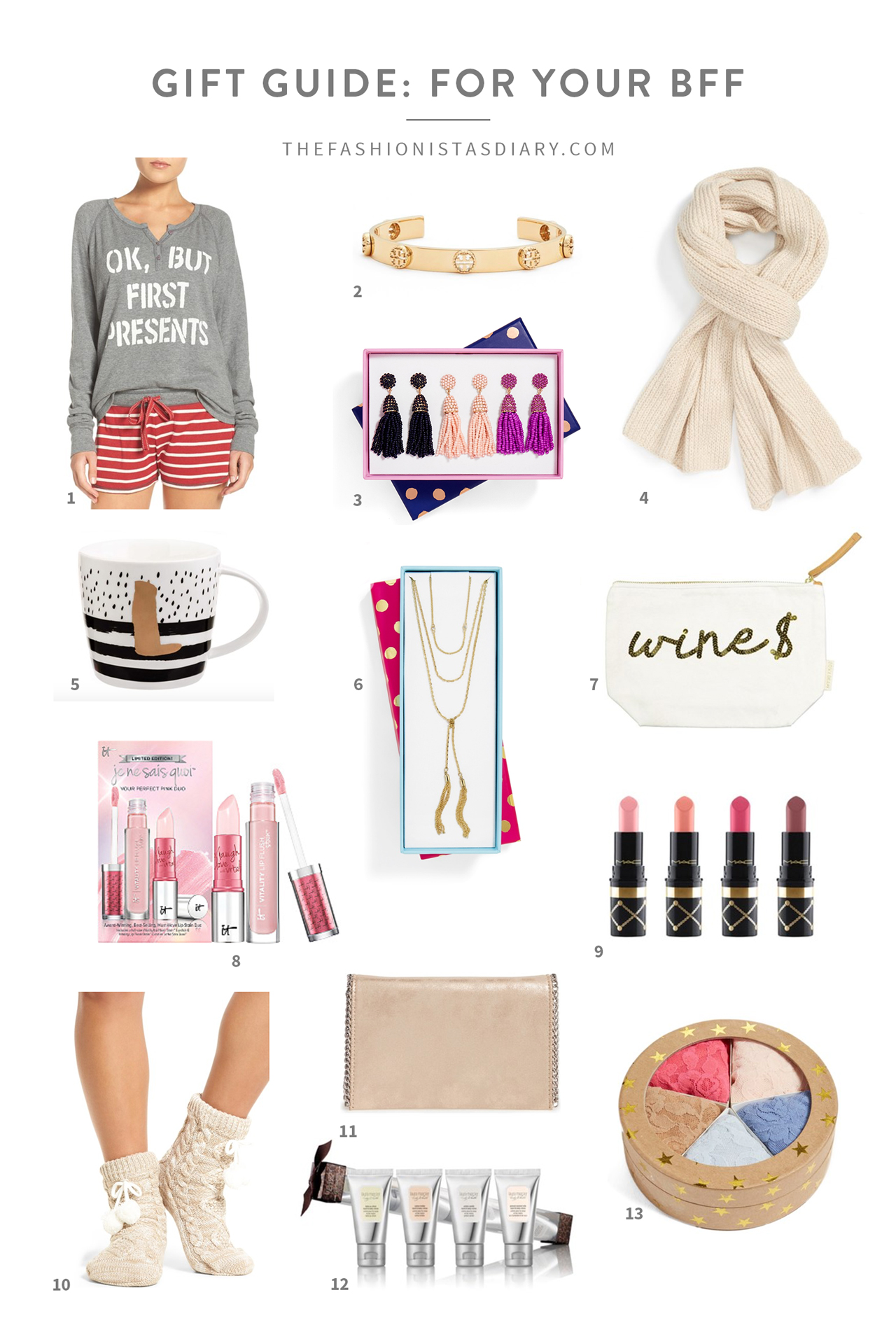 Happy Tuesday! Today I’m sharing a bit of inspo on what to buy for your BFF! You can click any image above to shop and I’ll also have a shop the post carousel below. All of these are under $100 and so perfect for the special friend(s) in your life! THESE would be a great gift and I’m obsessed with them. Also, everyone needs cute pjs or layering jewels. I’ll also feature some more below! Happy shopping!