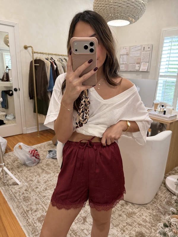 These lace pull on shorts that are under $30!!! They look like they should cost way more and are so incredibly comfortable. I wear an XS and bought both colors because why not?!
