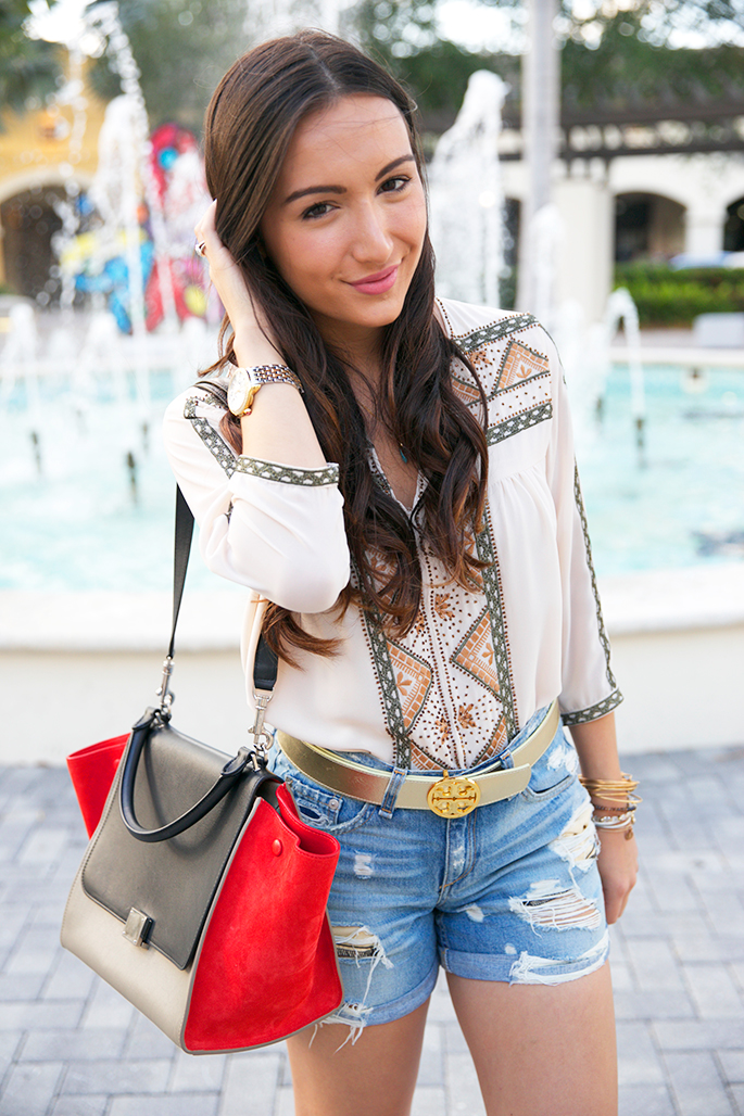 Top: Emporium Boutique | Shorts: Rag & Bone | Bag: Celine | Belt: Tory Burch | Shoes: Shoes 2 You c/o | Necklaces: Bianca Milov c/o | Bracelets: Alex and Ani, David Yurman | Ring: David Yurman | Watch: Michele | Lips: YSL Kiss and Blush #2