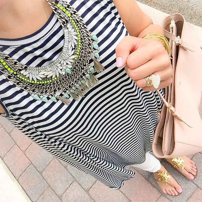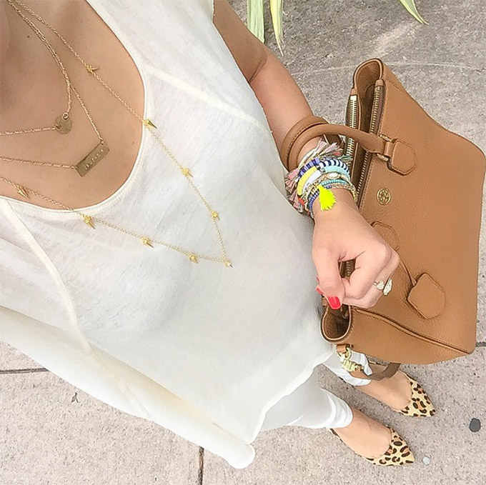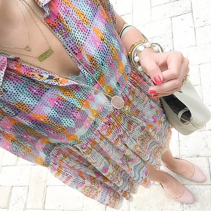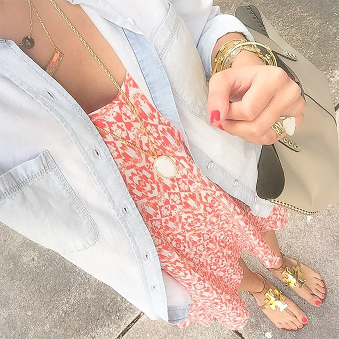 Dress (only $38!) | Chambray Top (so obsessed with this… I throw it over everything and wear it by itself!) | Shoes (30% off!) | Purse | Short Necklaces | Long Necklace | Ring