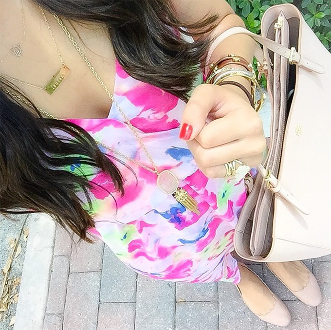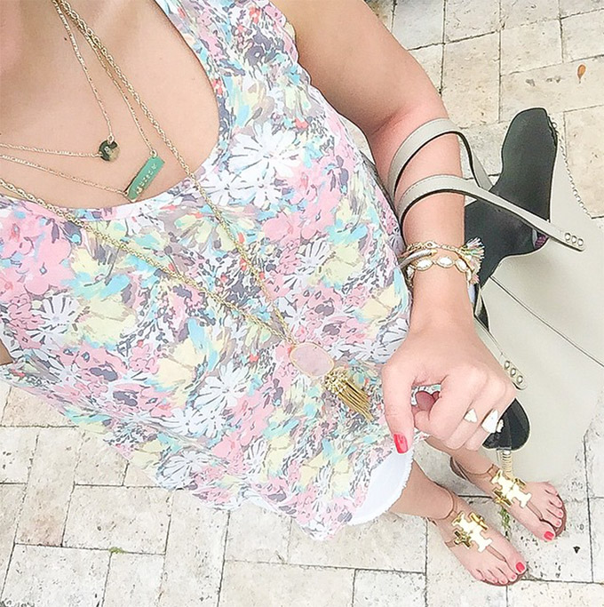 Top (only $34 and comes in tons of prints!) | Shorts | Shoes (30% off) | Long Necklace | Short Necklaces | Purse | Ring | Tassel Bracelet