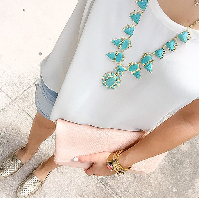 Top ($25! also comes in black) | Shorts (soo obsessed!) | Clutch | Necklace | Cuff | Espadrilles (on sale! I want to get these!)