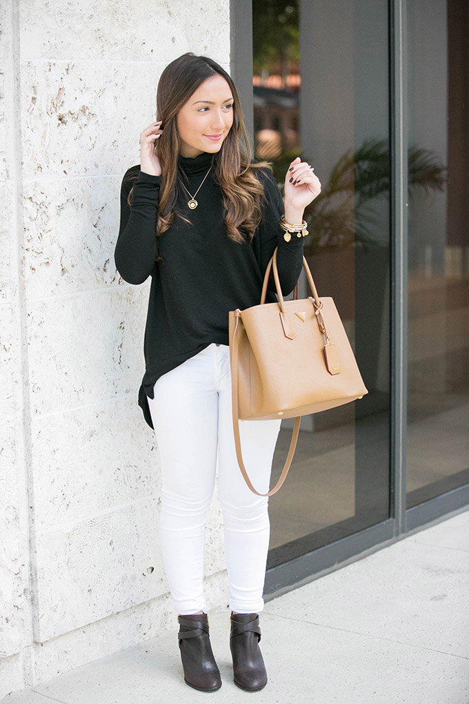 Happy November! Seriously, 2015 has gone by so fast. Even though it’s still so hot in Miami, I can’t help but bring out some of my favorite fall essentials. First up is this black turtleneck. I love that it’s longer in the back so you can wear it with leggings without showing your bum. I also love that it has a looser feel! I hate turtlenecks that make me feel like I’m dying or drowning in material. This one is so comfortable and can be dressed up or down because of how versatile the material is! It also comes in several colors and is less than $50.