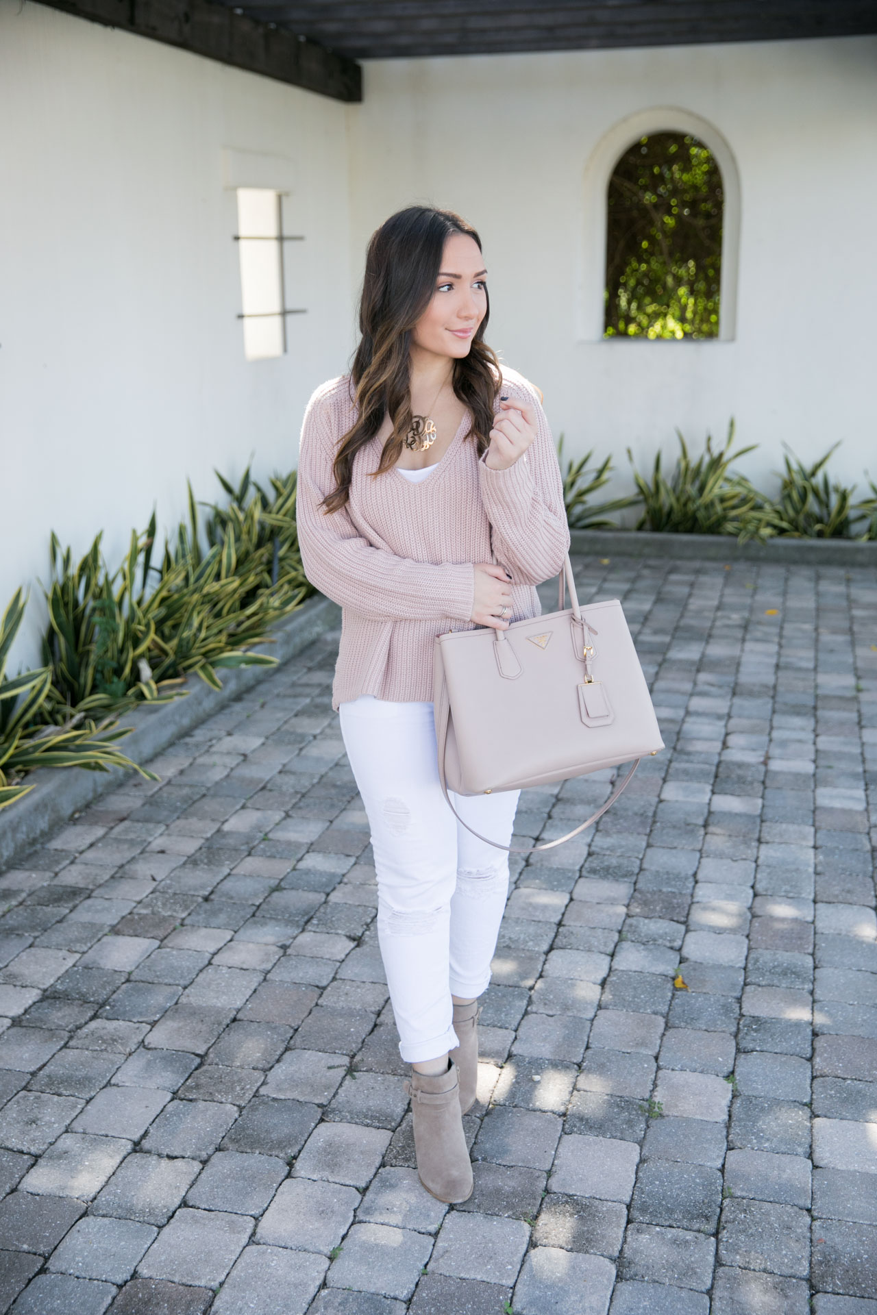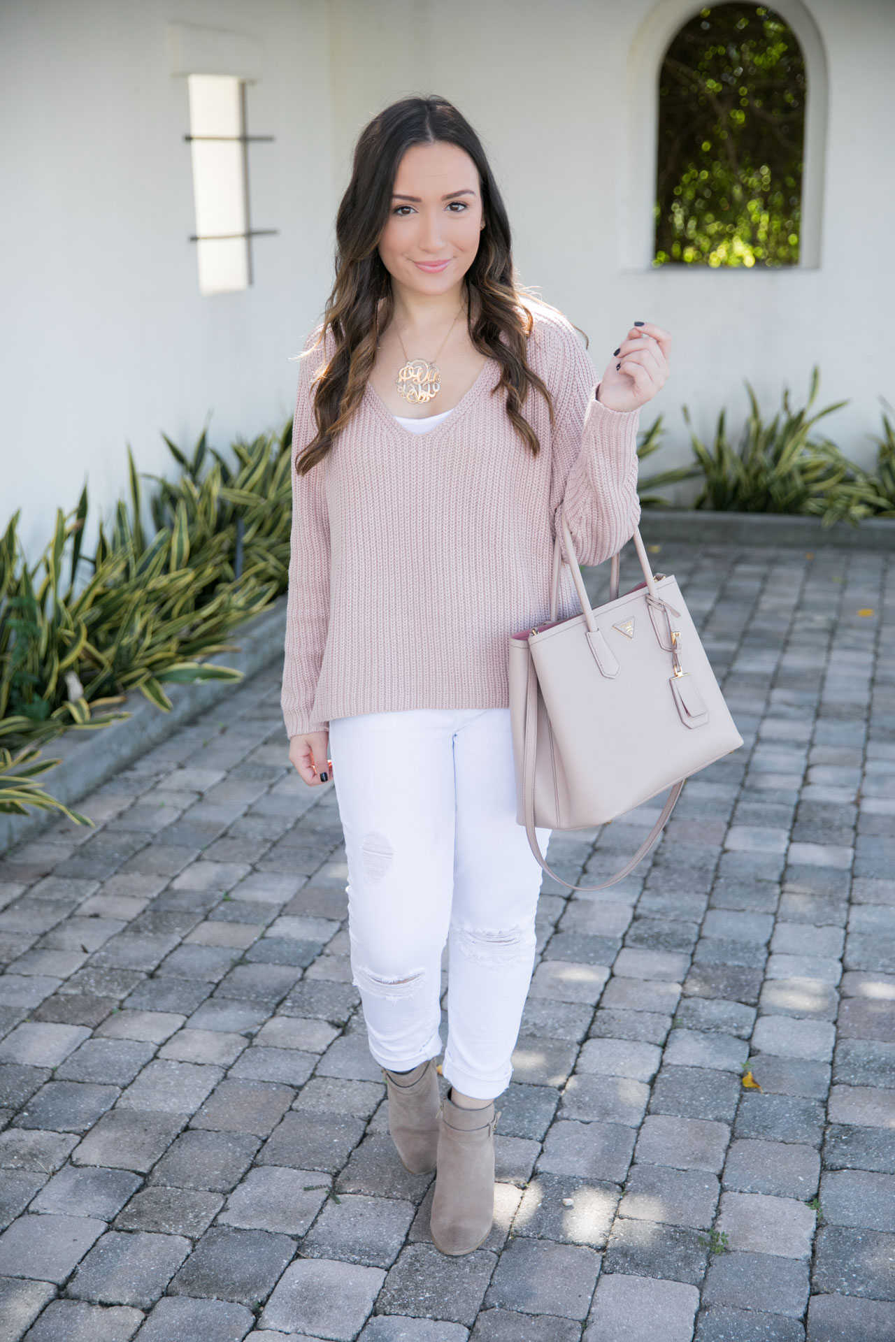Happy Wednesday, everyone! This week has flown by. I landed in NYC last night and it’s freezing. Today I get the keys to my new apartment (eek!!) so I’ll be sharing that on Snapchat with you – @laurenpatao. Today I wanted to share with you my favorite blush sweater that I’ve already worn several times on Instagram. When I love something, I love it. This blush sweater is one of those pieces that I could never take off! It’s so soft and cozy and I wear it with a tank under sometimes to add an element of layering. Plus, now living in NYC, I’m sure I’ll need more than a tank under… haha! I also have it in the white color and sized up to a medium for a looser fit.