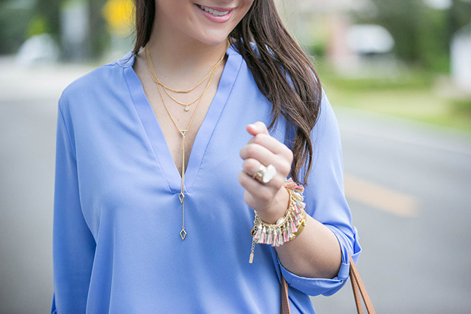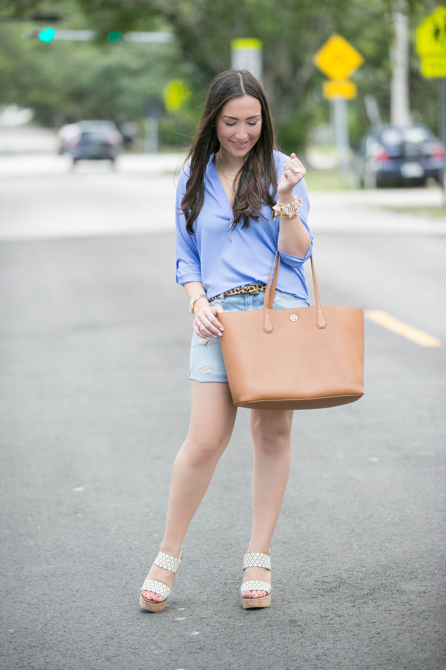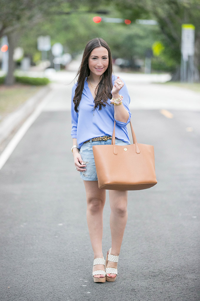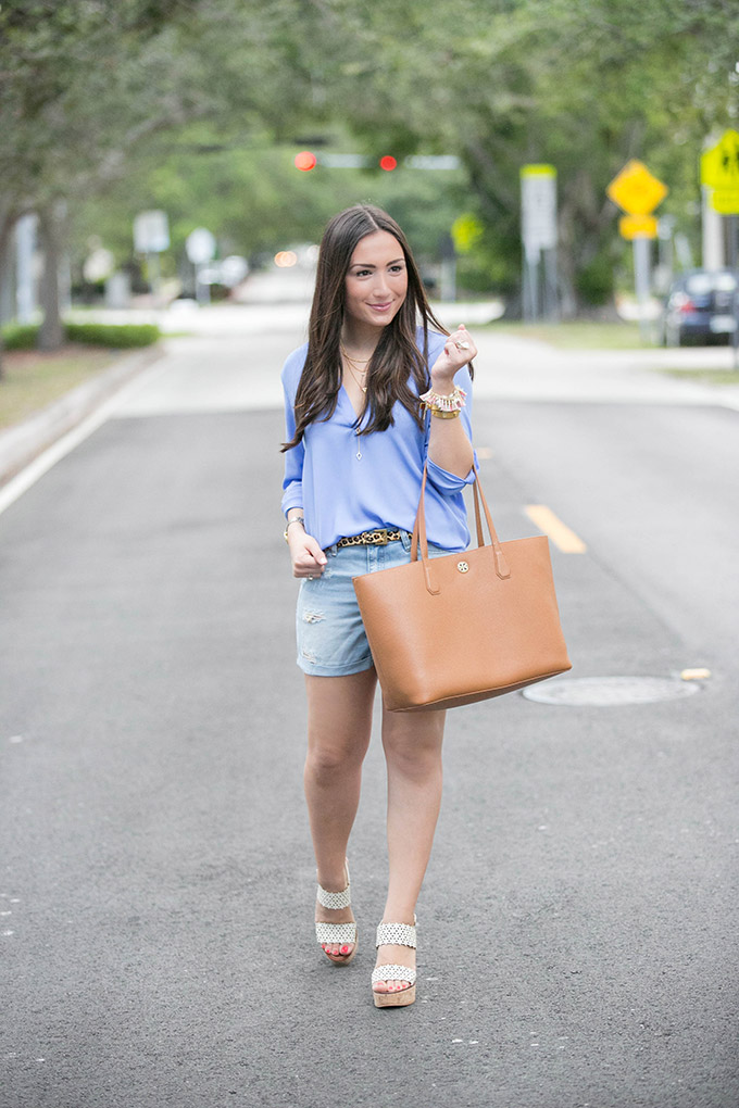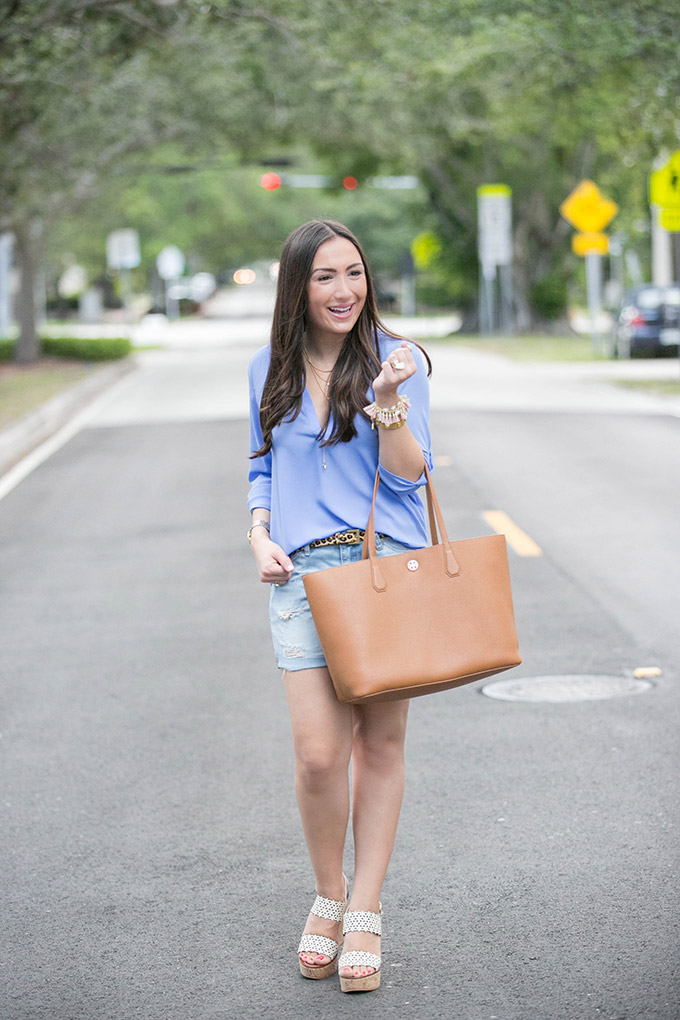 I kept it simple with this dainty layered necklace and some white wedges. I’ve worn these wedges many (maybe too many) times in the nude color and I recently got the white pair and am obsessed! They’re a little pricey, but totally worth the splurge considering how many times I wear them and how comfortable they are! And as for my new tote? I. Am. In. Love. It’s the perfect bag for the girl-on-the-go and to use every single day! It fits so much and the leather is so soft and smells really good.