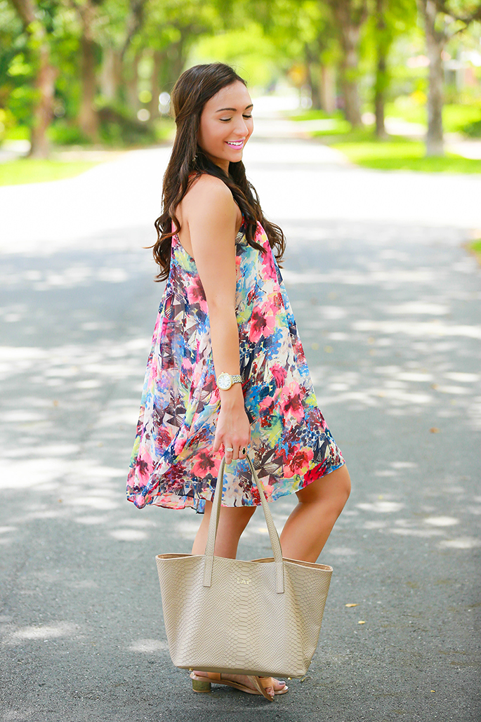 Dress: c/o Shop Dress Up (also love this one, this and this) | Shoes: Sam Edelman (similar, love these) | Purse: c/o GiGi NY | Necklace: c/o DolceAve Jewelry | Watch: Michele | Bracelets: c/o H.M. Willow | Rings: Kendra Scott | Earrings: c/o Baby Frou Frou (use code ‘tfdblog’ to get 10% off of anything on the site) | Lips: Mac Saint Germain