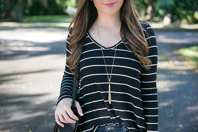 Today I’m so excited to be taking over a day of the 12 Days of Buried Bauble with BaubleBar! This amazing tassel necklace comes in both silver and in gold and is only $10 starting today! This is the perfect gift for yourself or for a loved one and is also an amazing stocking stuffer. I love this buried bauble and was so happy I was able to style it to show you how amazingly priced it is today! It will stay online at this price until supplies run out so get one while supplies last. 🙂 Happy Saturday! Shop everything else on BaubleBar here.