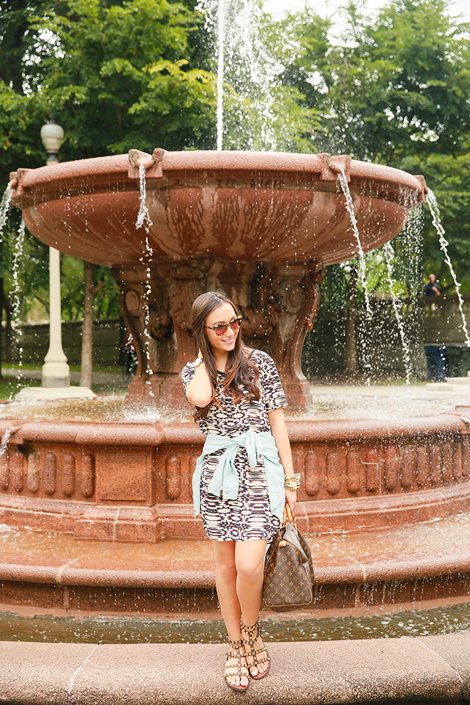The weather in Chicago has been so beautiful. I’m used to humidity at like… 80% and the temperature above 90 degrees. Yesterday my parents and I went around the city exploring and visiting new places. I fell in love with Grant Park. It was so peaceful and green that I didn’t even feel like I was in the middle of a big city! I love an effortless outfit. I just got this shirt dress, which is so comfortable, and decided to pair it with a jean jacket and my favorite shoes, ever. I have these Sam Edelman sandals now in two colors and they are the most comfortable pair of shoes I own! I’m planning on getting all of the colors, maybe… Hey, when the shoe fits, buy all the colors! 🙂