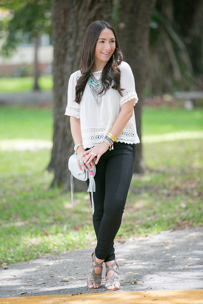 I’ve found myself reaching for this lace top more often than not lately, but I think I’m completely okay with that. This flowy white lace top is a dream! I’ve paired it with boyfriend shorts, these black jeans and skinny denim and it looks great with everything. It’s one of those tops that you know you’ll cringe, cry and roll over if you ever end up losing (this has happened to me but with a pair of pants).