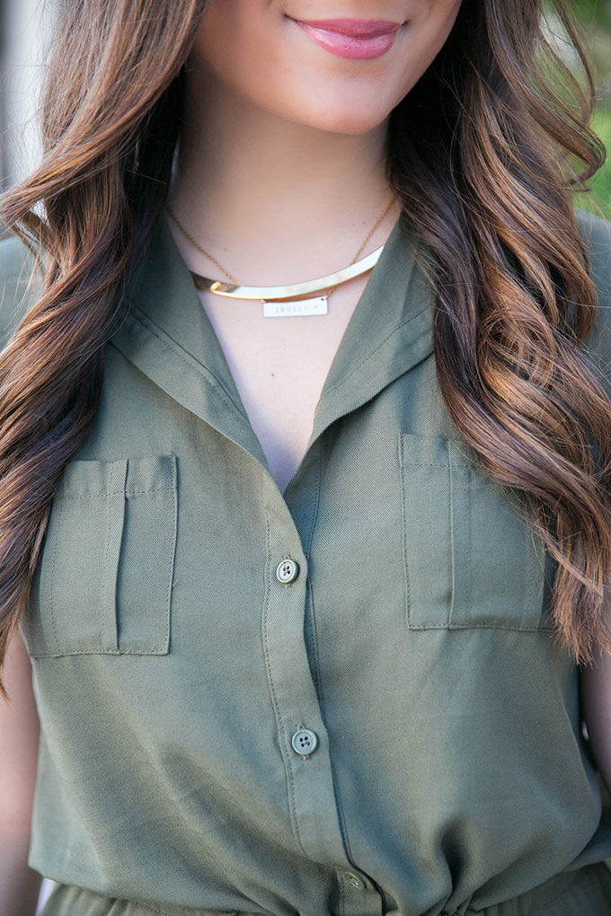 I paired this dress with some gold jewels from Taudrey, which have quickly become my favorite. This collar is so light and can be layered with other dainty jewels! I really don’t like things that weigh too heavy on my neck because of my migraines, so this is a perfect accessory.