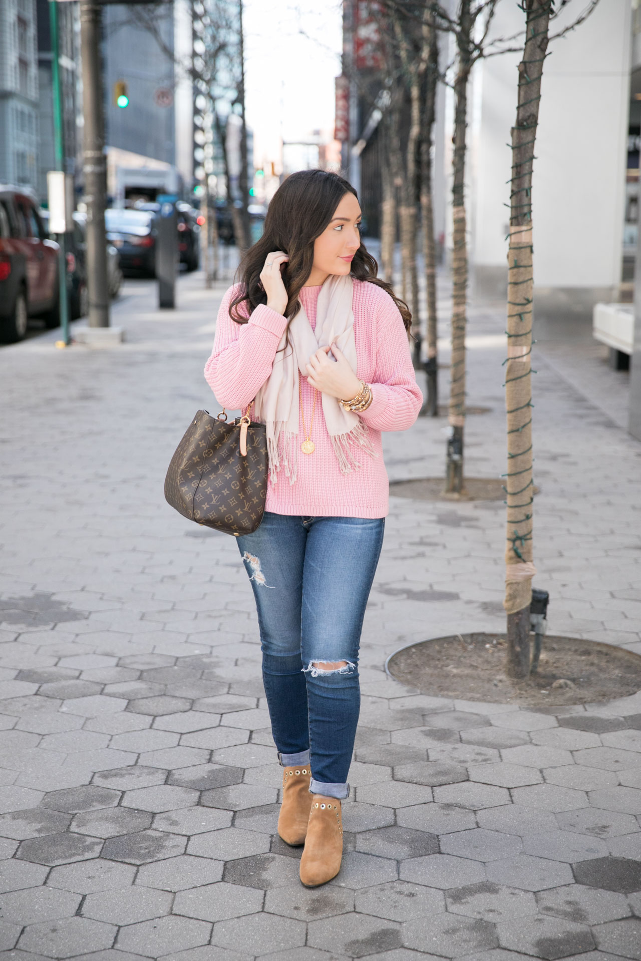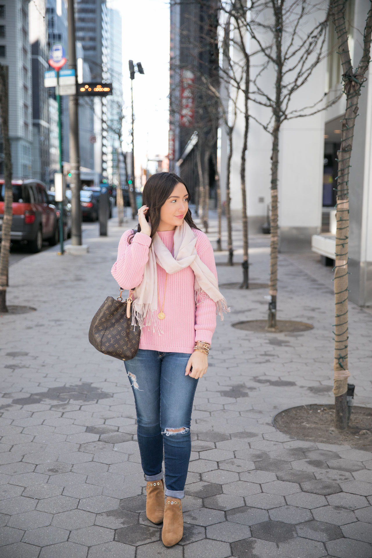 This pink sweater from Marks and Spencer has quickly become one of my favorites. I usually gravitate toward neutrals (I’m sure you know this already) so wearing pink is a special occasion kind of thing. But I feel like this is a sweater I can wear now and into the spring because of the beautiful and vibrant color. It’s so important to incorporate bright colors into your wardrobe during the winter because the weather is so dull and gloomy. This sweater in particular is also only $30… I mean, does it get any better than that?! It also comes in a gorgeous navy, off white, and soft khaki. I might have to pick up another one! It’s so cozy and warm.