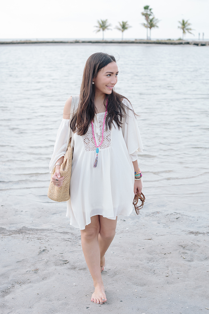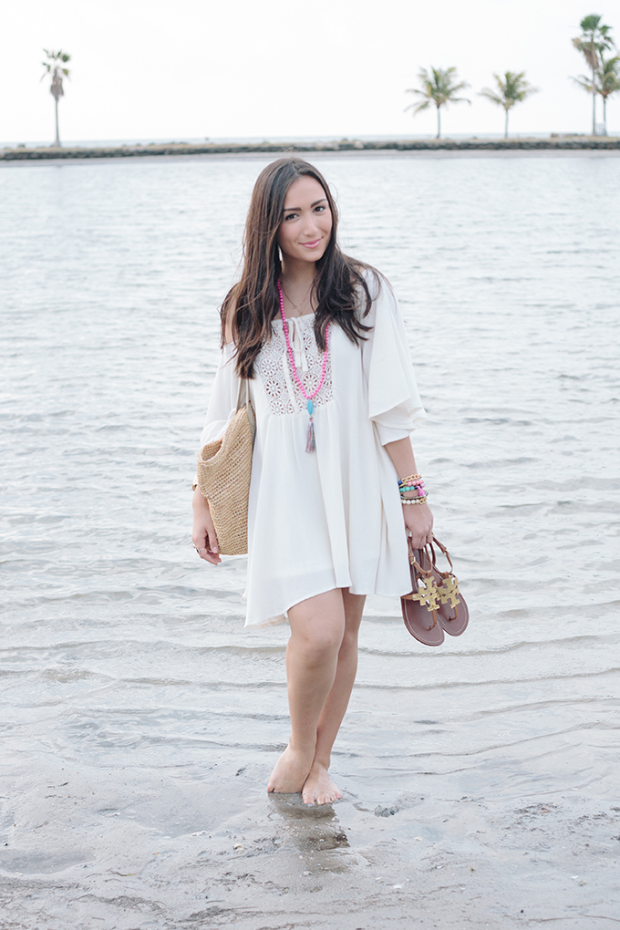 Happy weekend! Today I’m showing you how you can dress down this amazing crotchet dress for a perfect beach coverup/beach day look! I added some fun accessories, including my favorite necklace, which you can buy here and also switched up bags. By the way, this bag is currently on sale and is the best beach bag ever! I’m seriously obsessed. This crotchet dress is honestly so versatile and I can’t wait to wear it again {and again and again}. Pick up one for yourself before it sells out! Also, I just bought this necklace, too, and can’t wait for it to come in. It’s perfect for the spring and summer months and will go with anything! Which look did you like better? Beach coverup look or dressed up look? I would love to hear your thoughts!