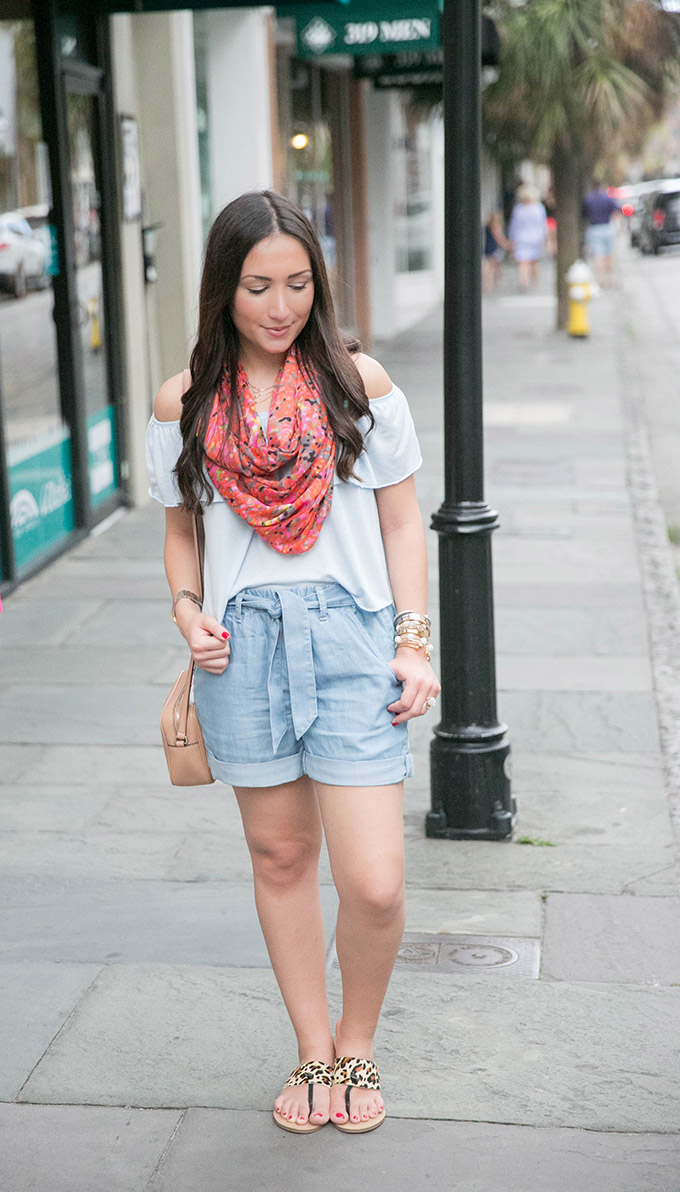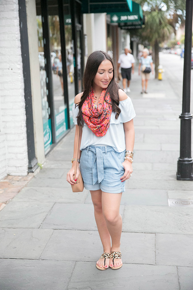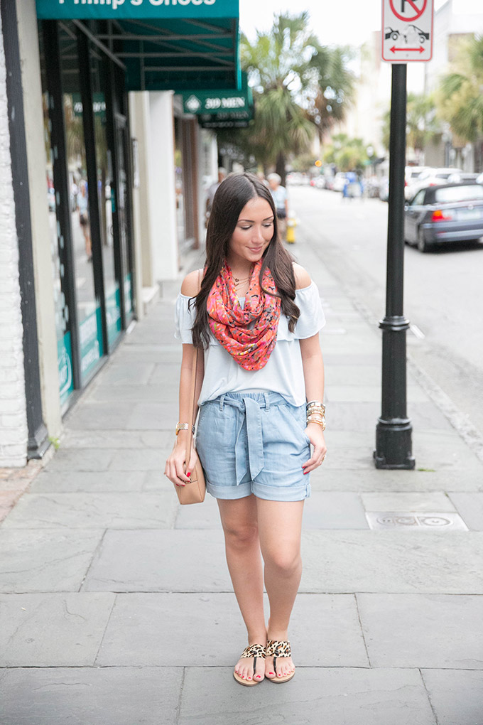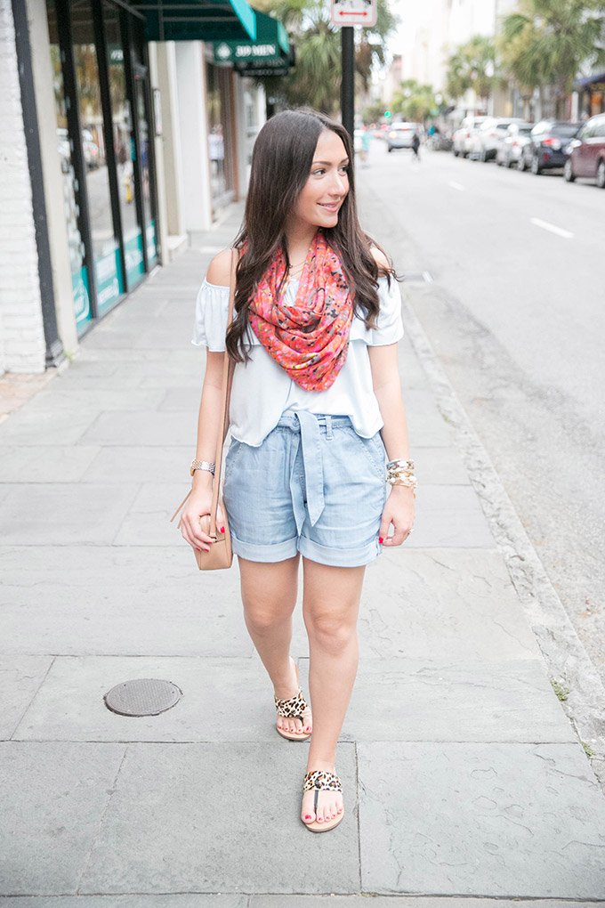 These shorts are also my favorite, but you already know that because I wear them so much! I really highly recommend these shorts for any of you who love denim but don’t always want to wear your typical denim shorts. These. Are. Perfect. (!!). Also, this top is only $25 and comes in several colors… it’s super light and fun for summer! I could see it paired with a maxi skirt or white jeans.