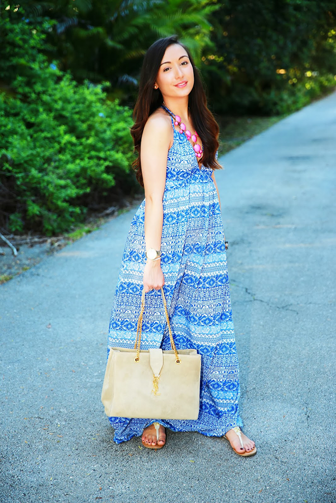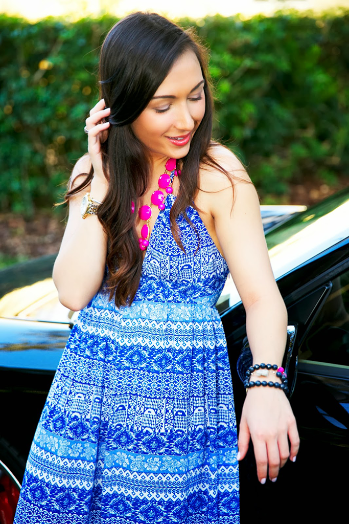 Living in Miami, I pretty much have summer 365 days a year. Well, if you ignore the classes, homework and all-nighters prepping for exams. I love mixing colors so I had fun pairing this amazing summer-inspired maxi dress with a hot pink chunky necklace. Dreaming of sipping on a strawberry daiquiri (virgin, of course) in my own tropical oasis…