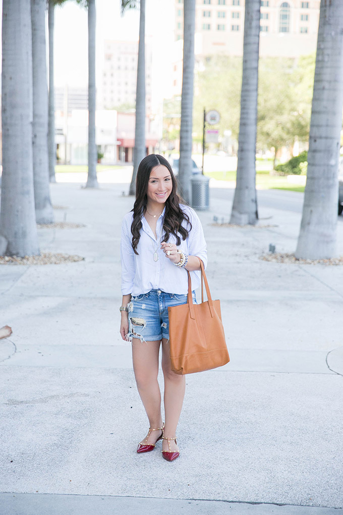 Obviously, you can alter any of these tips to fit your own needs/tastes. I’ve just found that these serve as a great guideline for me when wearing a pair of denim shorts! I’m wearing these. They are expensive but I wear them all of the time… so they’re worth the investment!