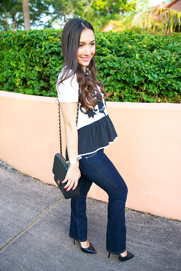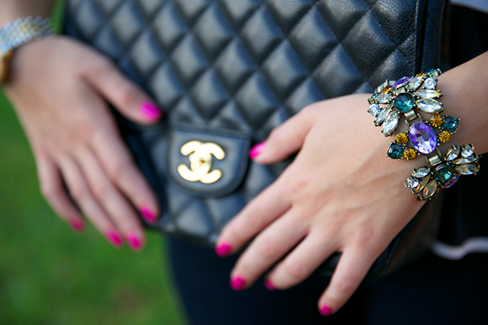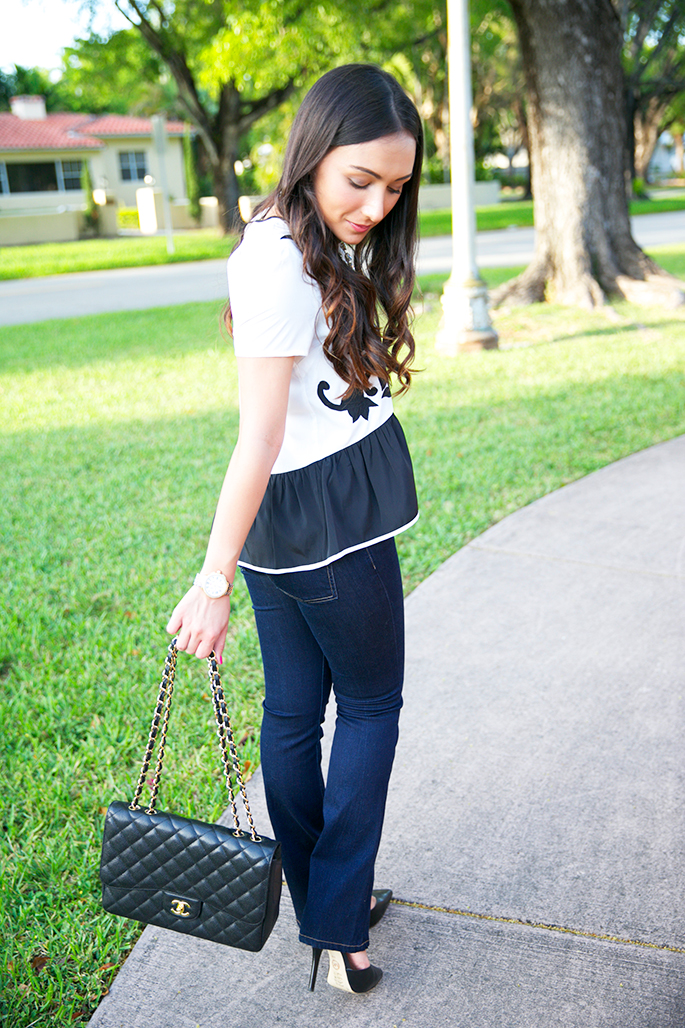 Top: Juicy Couture | Jeans: 7fam | Shoes: Michael Kors | Bag: Chanel | Necklace, bracelet: Accessory Jane c/o | Watch: Michele