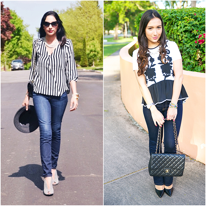I’m so excited to have had the amazing opportunity to collaborate with Sophie of Smitten Sophie to show you guys two different ways to dress up your denim! Sophie is an amazing fashion blogger and has a great sense of fashion. I’m a Miami gal and she’s a Toronto/Seattle blogger, so it makes things fun! What do you think about how we dressed up our denim? My outfit details are at the end of this post!