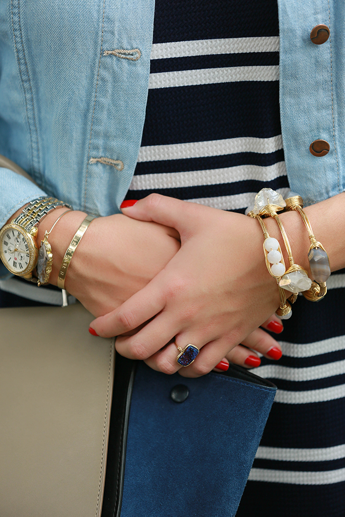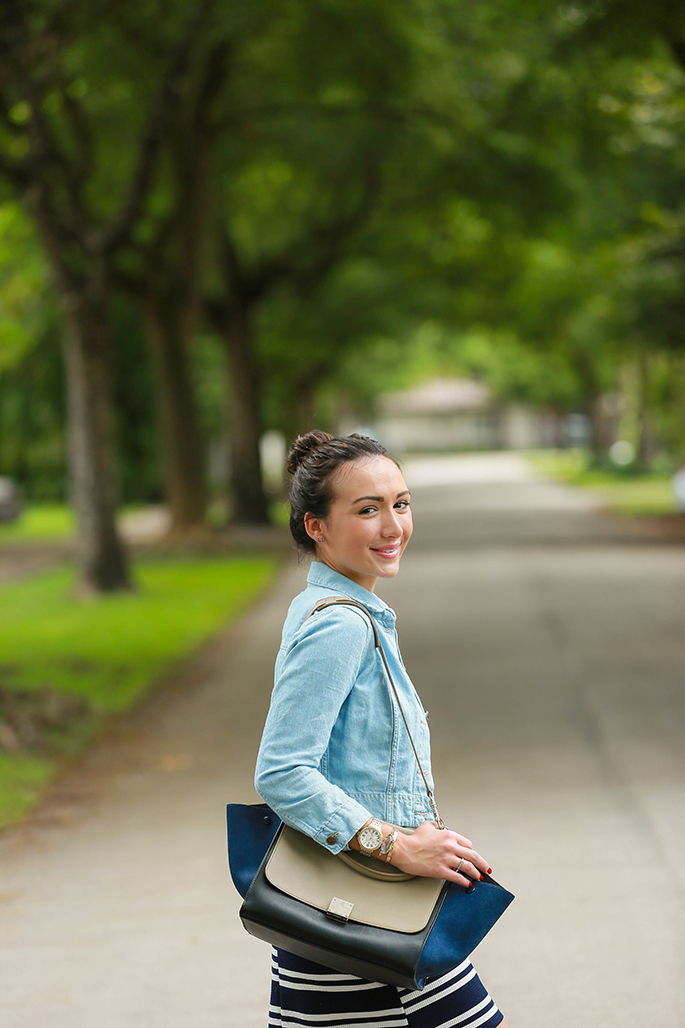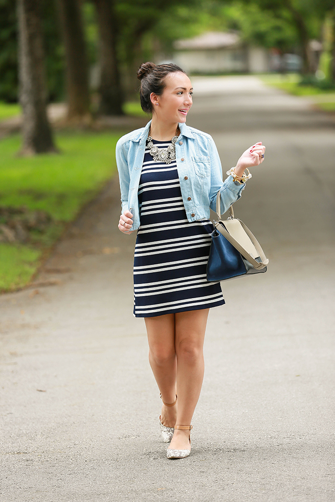There’s no doubt that I love casual outfits. I love how effortless this outfit looks when on, yet I love even more how it still looks put-together (despite how easy it was to pick out and put together). I’m obsessing over this striped dress and added a denim jacket over it to dress it down and make it a bit edgier. And, since mixing prints is a definite “thing,” I added my snakeskin flats to the mix! The bangles pictured will soon launch as a charity stack that Haley, of H.M. Willow, and I have been working on for a while now! Make sure to follow me on instagram to find out all of the details. There’s nothing better than shopping for a cause!