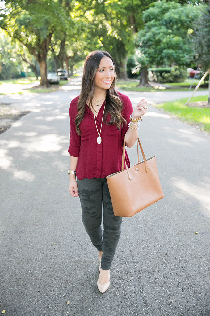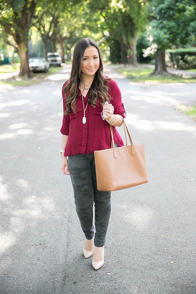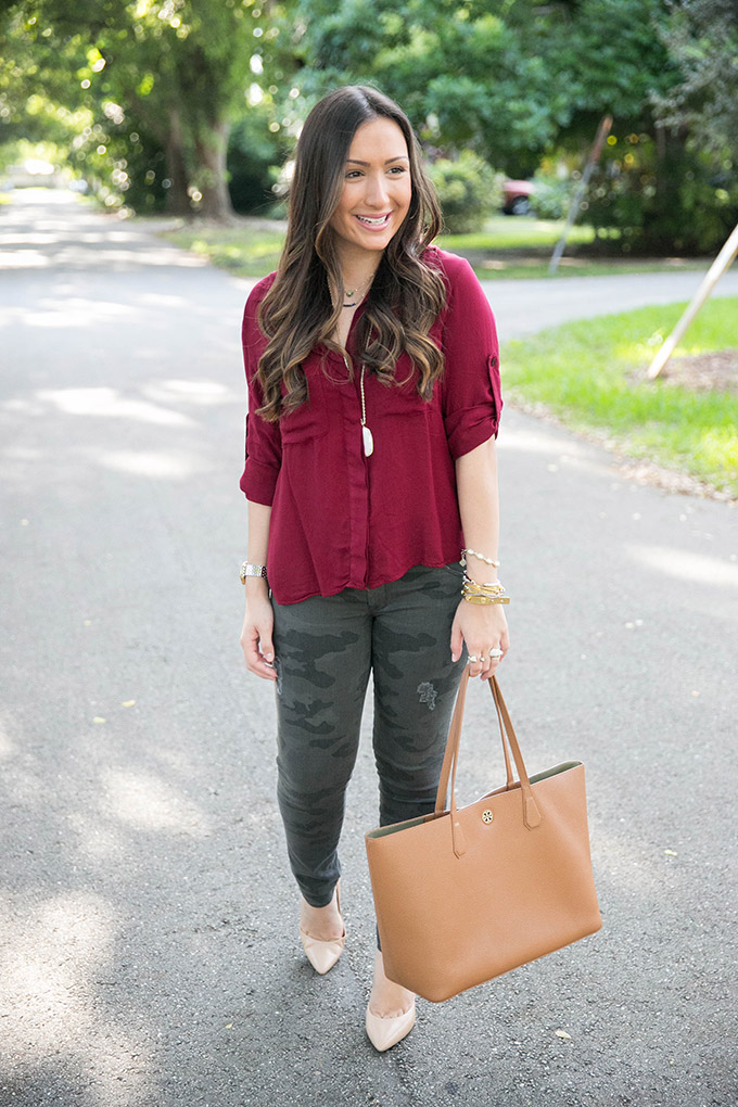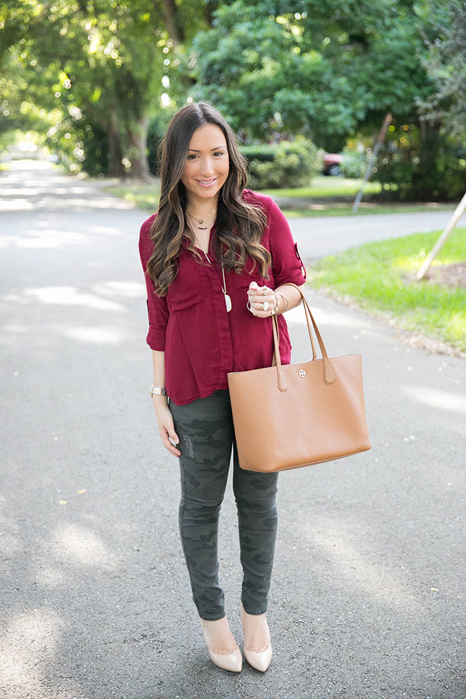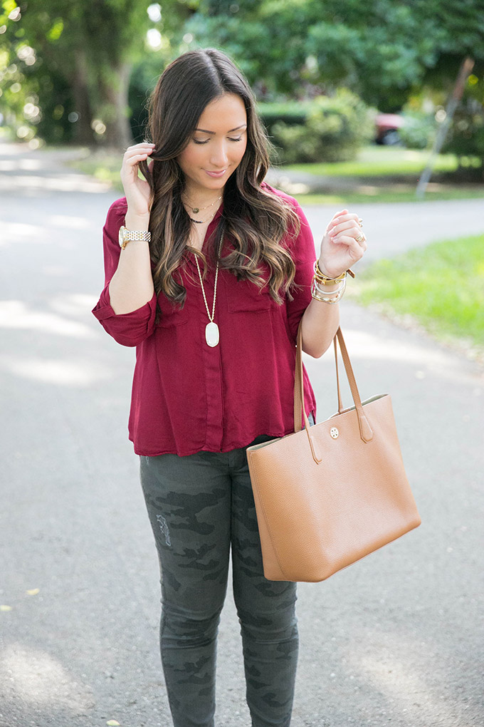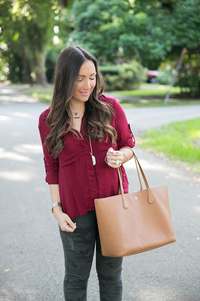 Today I’m teaming up with one of my favorite brands, Bella Dahl, to show some fall style and talk about one of my favorite trends for fall. This deep crimson top is the perfect blouse for fall. It’s a gorgeous color and would look so pretty with a vest over it once it starts to get colder. I absolutely love deep crimson for fall because it’s the perfect color to add into your wardrobe. Bella Dahl has some of my favorite tops ever and they are all SO comfortable.