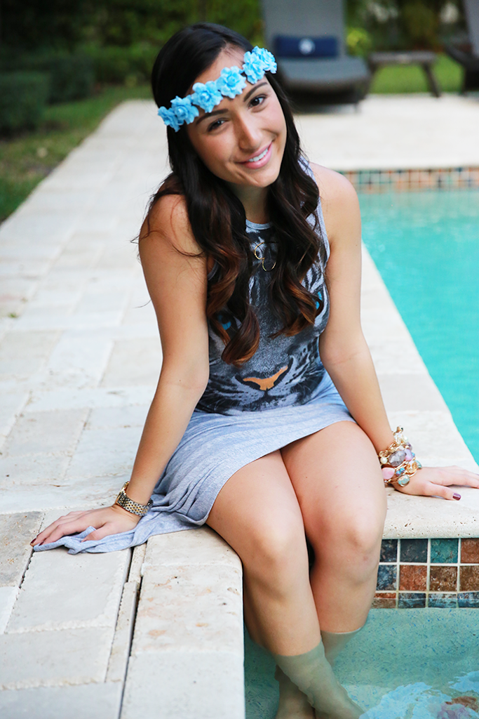 There’s nothing better than a dress that has the going out look but the comfort of a pajama. This grey jersey dress with a side slit from Blush Boutique is a keeper. When I slipped it on, I felt like I could wear it out absolutely anywhere and maybe even fall asleep in it (since it’s so comfortable). Anyways, I think the tiger on the dress will keep the bad guys away while I rest up, right?