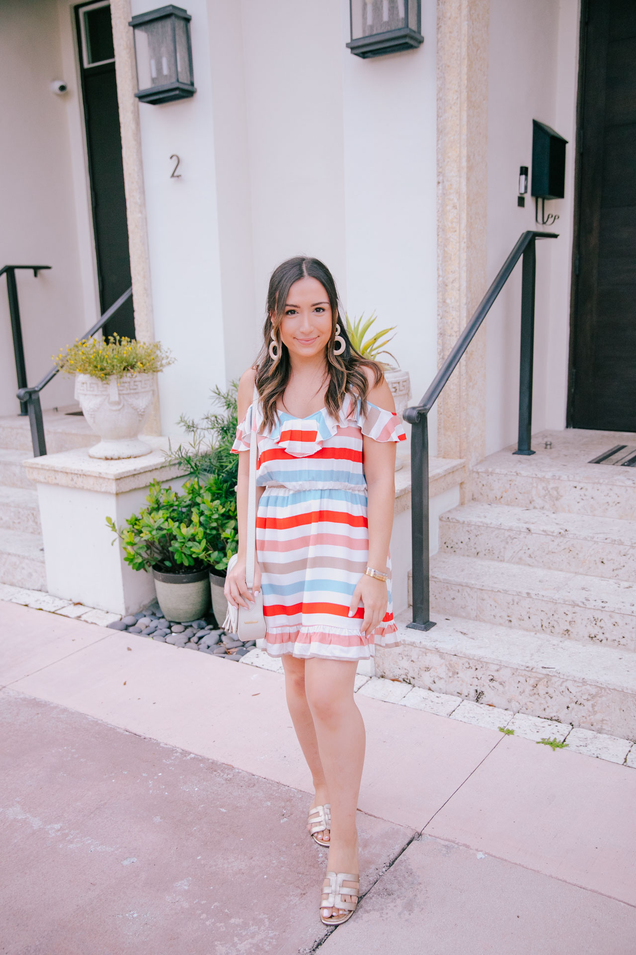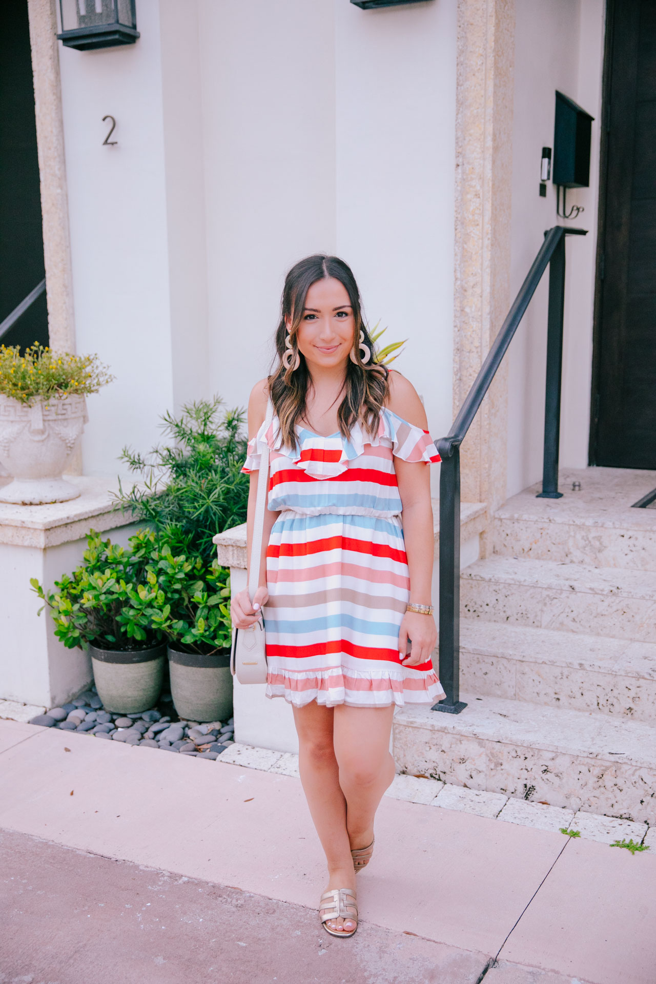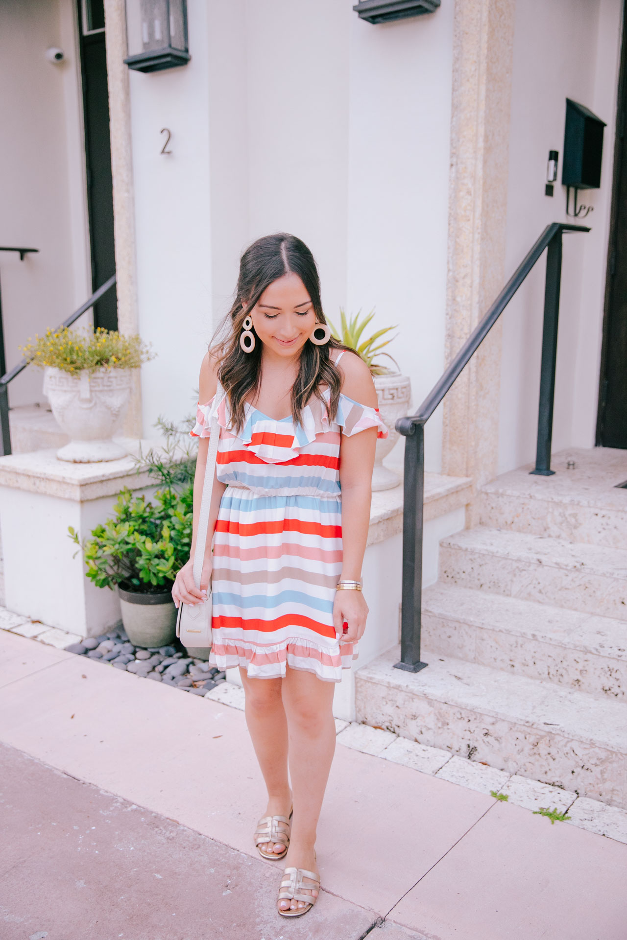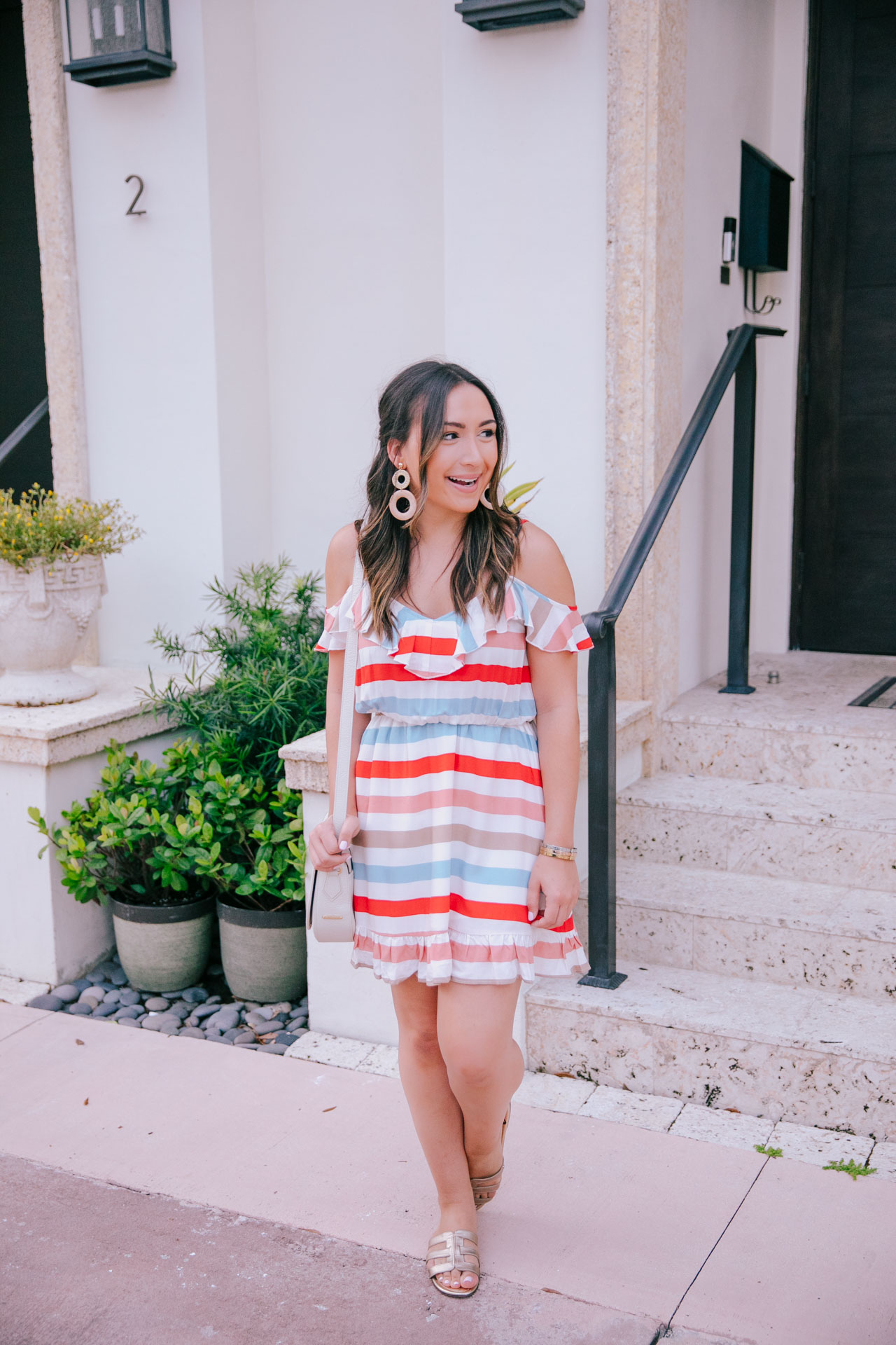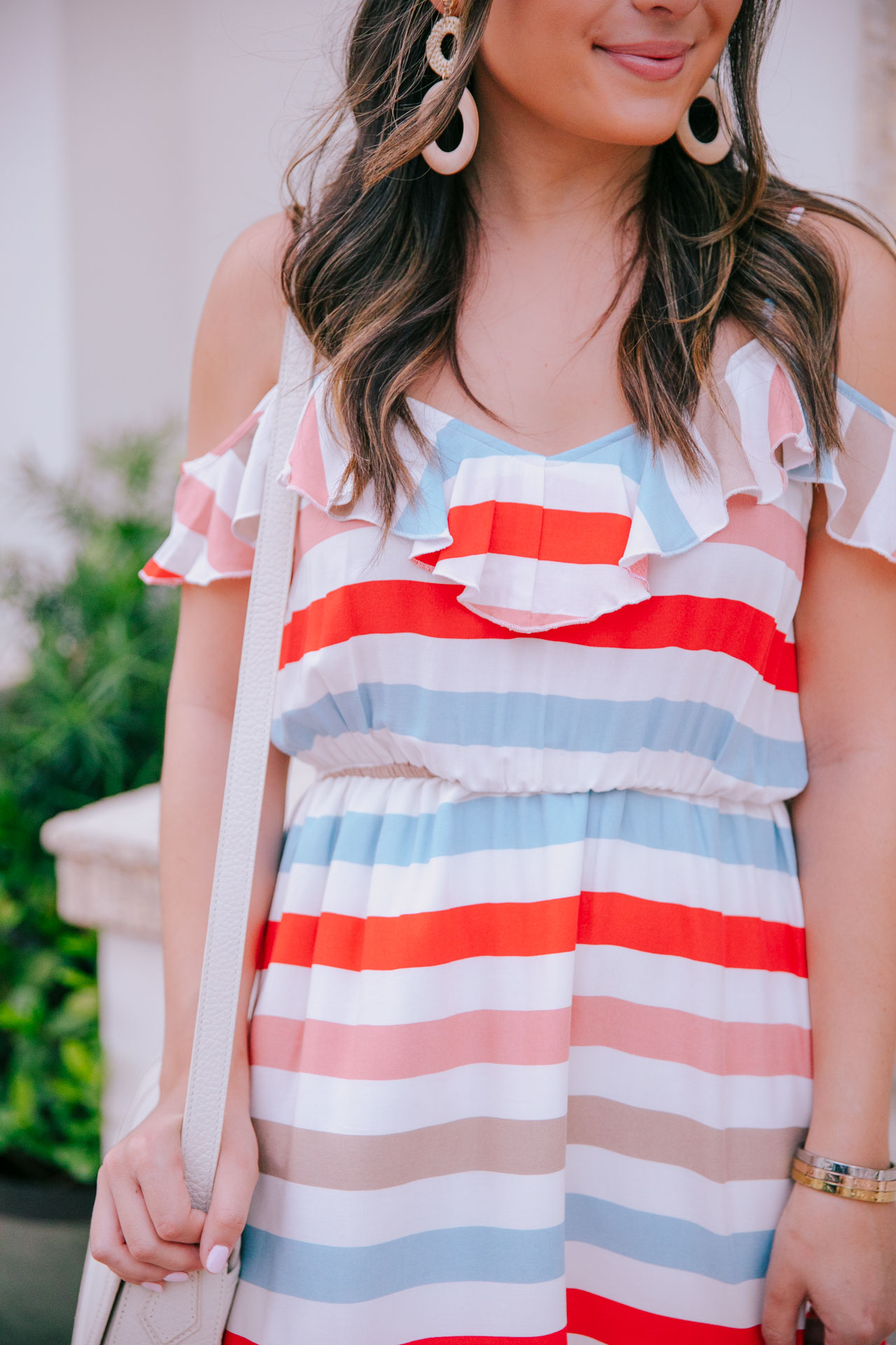 Happy Monday, all! With Fourth of July around the corner, I wanted to share this dress that is perfect for the holiday. While it’s not only red white and blue, it is a cute and more casual way of sporting the holiday’s colors if you don’t want to wear something strictly red, white and blue (like me!). This cutie dress is so comfortable and also perfect for summer in general. It’s breezy, lightweight and I love the colors of the stripes. I could see myself wearing this for lunch with espadrille wedges or dressed down like so. I originally purchased a medium but exchanged it for a small.