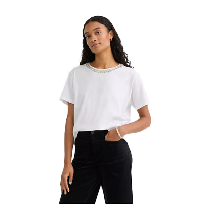 Crystal Beaded Neck Tee