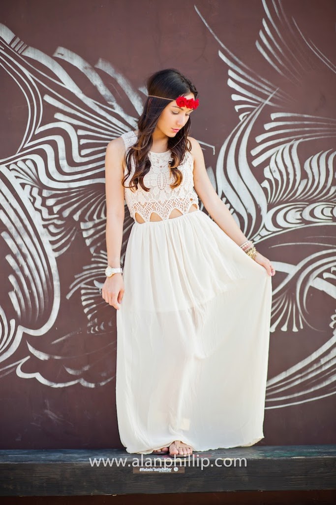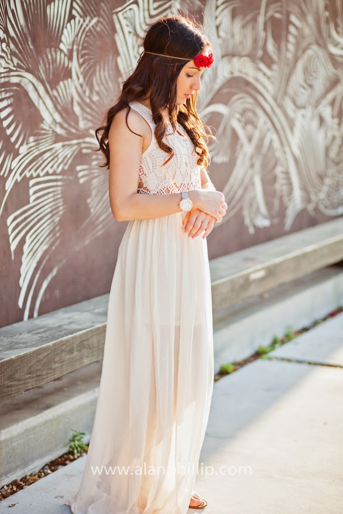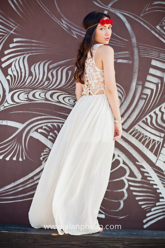 I fell in love with this dress right when I saw it. I already pictured myself wearing it with a flower halo, rose gold clutch and neutral bracelets. I never thought that my photographer, Alan, could turn my vision into a reality. I’m so happy with how these pictures came out. I love this dress because it gives off a Greek goddess kind of look/bohemian vibe and that’s one of my favorite looks. Plus, the crochet detailing on the back of the dress are so stunning and unique that there was no doubt in my mind as to whether or not I should have added that dress to my online shopping cart. Let’s just say it was… so necessary!