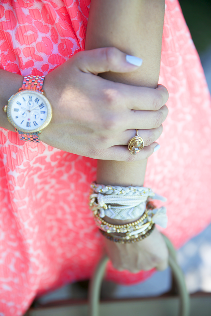 Dress: Juicy Couture (on sale!) | Shoes: Sam Edelman (on sale!) | Bag: Celine | Necklace: Accessory Jane | Bracelets: Lucky Sage Shop c/o, Alex and Ani, David Yurman | Ring: Sparkle in Gold c/o | Watch: Michele | Lips: YSL Rouge Volupte #1