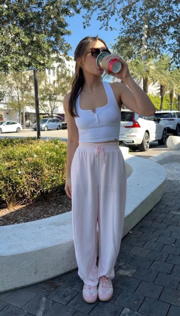 French Terry High-Rise Barrel Leg Sweatpants: I’m currently writing this blog post with these on… hehe! They’re SOOO good and comfy! I wear a small but I would prefer XS. They’re effortless, lightweight, easy. Perfect for school drop offs and pick ups and so much more. I love them so much. I have them in pink and blue.