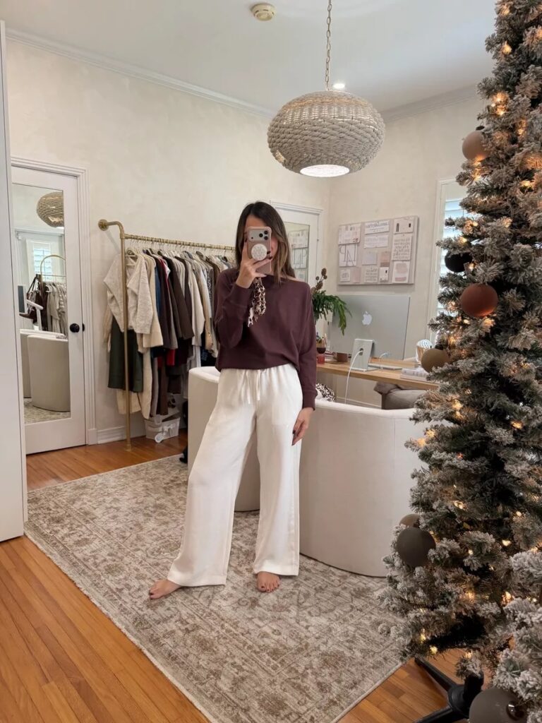 The Lodge Pant: the best pants, quite possibly ever. I think I mention them about 2-3 times a week with reason. I have the crepette version and the satin version. They are wrinkle resistant, elevate any look but can also be dressed down. I love them so much I even have several of each one (you know, just in case). I wear a size small in these!