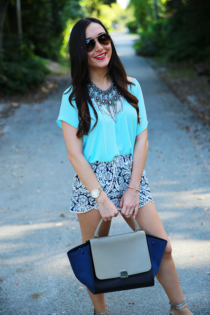 If you know me, you know that I’m most likely always (or almost always) wearing printed shorts and a solid top. It’s my go-to outfit. If you really know me, and I mean really, you would know that basically every pair of printed shorts I own are from Habit Boutique in the Gables. I love this outfit with different blue tones and with my new Sam Edelman shoes… which I love… a lot. And don’t even get me started with the necklace. I had been trying to find it for a while and finally spotted it at one of my fave stores, Zara. Have an absolutely amazing Monday! I know it’s hard, but let’s all at least try. Lots of love!