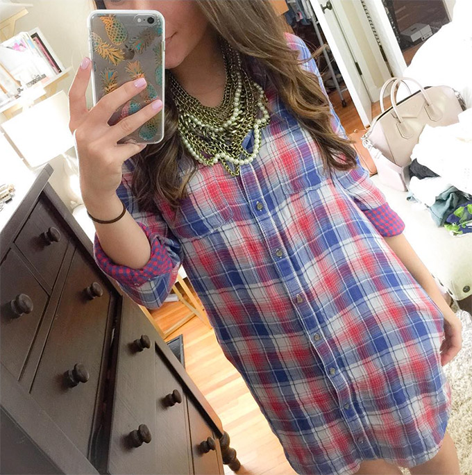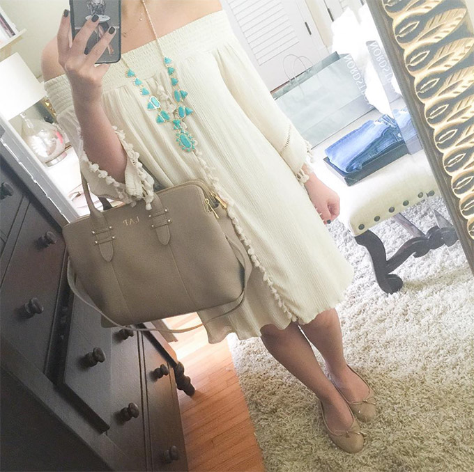 Dress (comes in two colors and on sale!) | Necklace | Flats | Purse