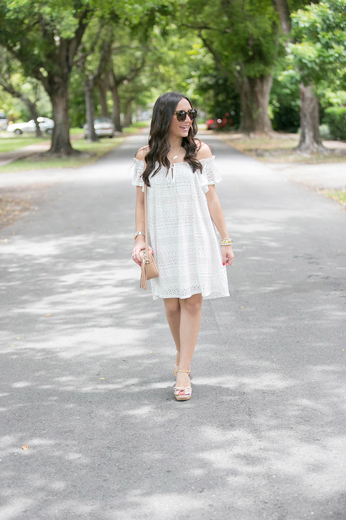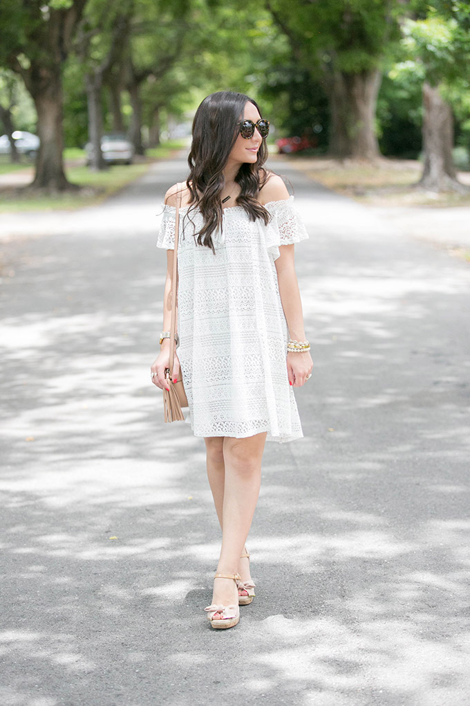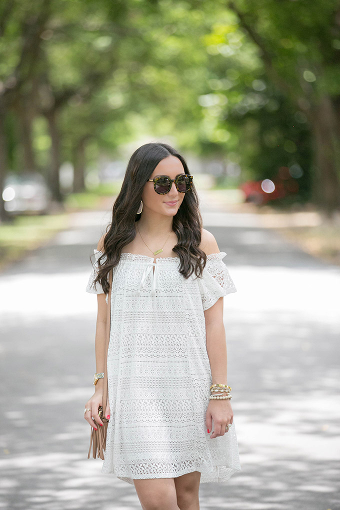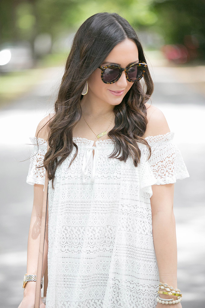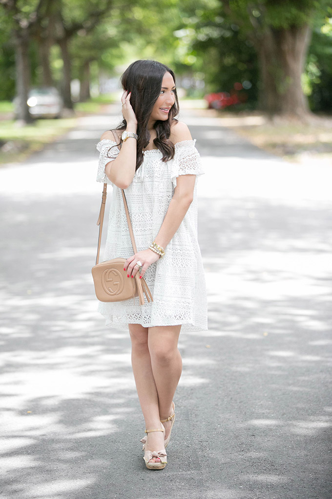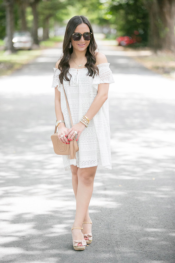 summer-style-white-dresstaudrey-jewelry-necklacewhite-lace-dress-topshopwhite-lace-dressgucci-crossbody-beigewhite-dressgucci-bag-gold-jewelskaren-walker-sunglassestopshop-white-dresskendra-scott-jewelryI’ve been meaning to shoot this dress for a while now but I hadn’t been able to until now. I absolutely love it. I’m actually considering getting it in the navy, too. I’m one of those people who, when I really love something, I get it in all available colors! Is anyone else like that? This white lace dress is just one of those pieces I know I’ll be wearing a lot over the summer. I just wish I had ordered the size 4 instead of the size 6. Also, I just bought my favorite wedges in white. See what I’m saying about buying everything in all of the available colors?