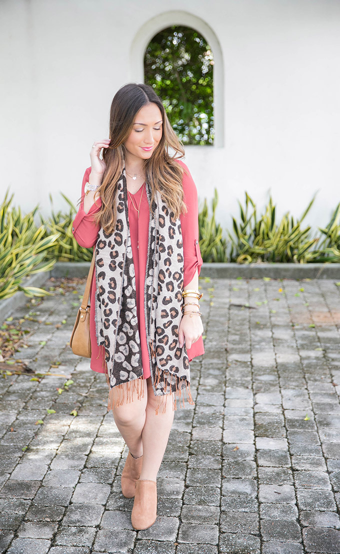 I’m so excited about this dress. It’s so comfortable, fun to dress up (it’s basically a blank canvas) and affordable! I have nothing in the color marsala, so you can imagine how excited I was to find this marsala shift dress. It also comes in a bunch of other colors! I picked up the wine color, too. This shift dress is a great dress for the holidays. Just think how cute it would look with a faux fur vest, OTK boots or a pretty statement necklace. I love that it’s a plain shift dress, so there’s so much you can do with it to help it speak to your personal style.
