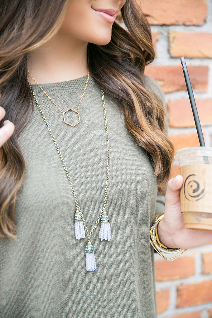 If you follow me on Snapchat (laurenpatao) and Instagram (faurenashleypatao) you’ll see that I’ve been wearing some Miranda Frye Jewelry a lot lately. This bangle set has been on my wrist every since I received it in the mail. Also, these rings are gorgeous! I absolutely love how dainty all of the jewelry is. I paired my new necklace with a longer tassel necklace to add some layers. I definitely recommend checking out Miranda Frye Jewelry. The price point is great, too!