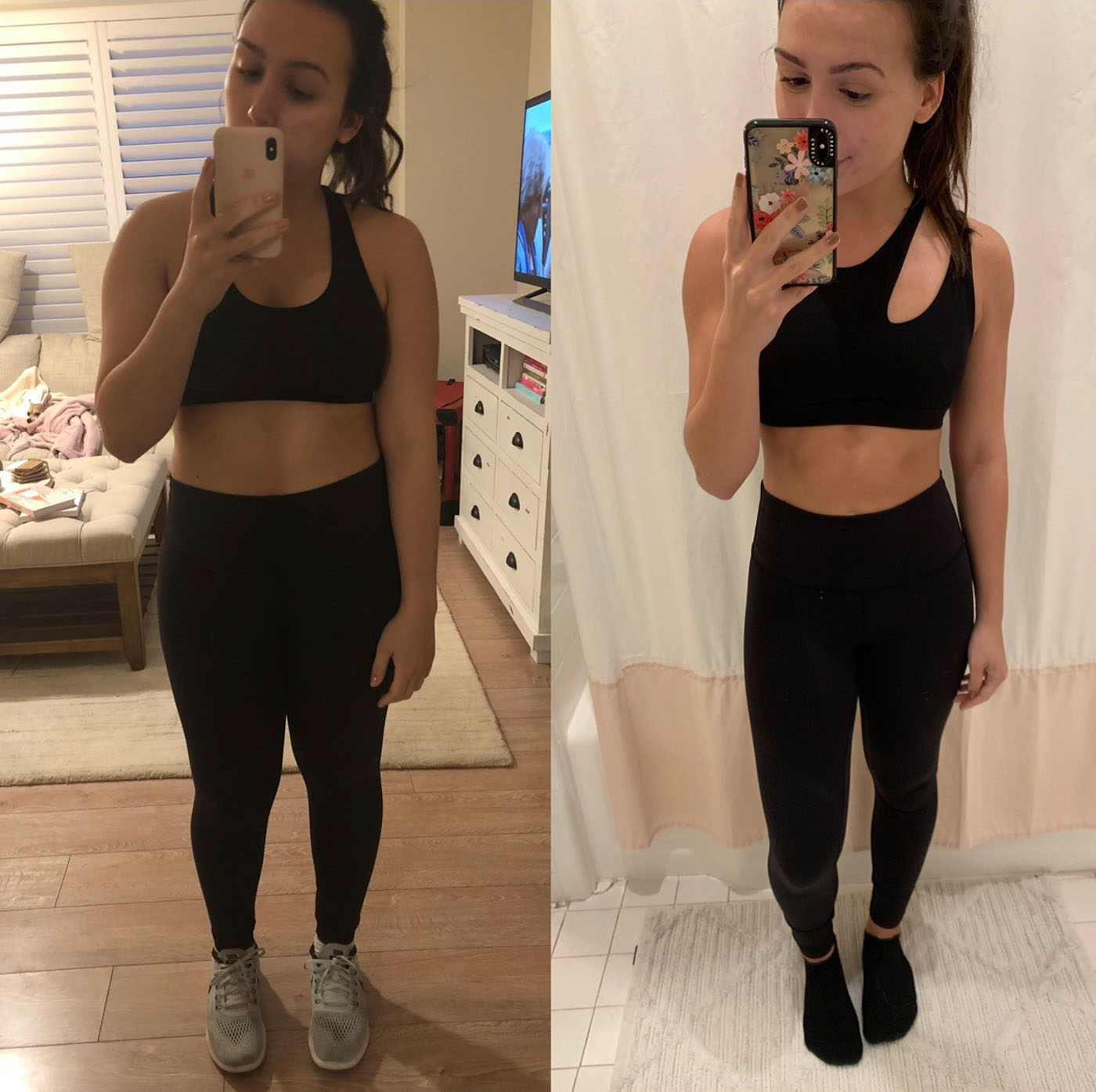 - How have you been so consistent? Do you ever feel like you’ll fall off the bandwagon? As they say, consistency is key. Once you make it part of your daily routine, it feels weird if you don’t go. For pilates, there’s a $20 late cancel fee within 24 hours so that helps me. I really just remind myself of how I used to look and feel before and that gets me up. Also, having fun weekend plans like getting in a swimsuit really helps because you want to look good for that. I also set small goals for myself. I think that’s so much more important than setting one huge goal that you feel you’ll never attain. Like, maybe it’s lose 5 pounds this month or drink half your body weight in oz of water a day (which is very important). It’s about small steps and achieving those things and just reminding yourself why you started. Also, it’s great if you get a workout buddy. They help you stay accountable! I don’t have one but I do have friends that I go to the gym with or see when I’m there and that helps.