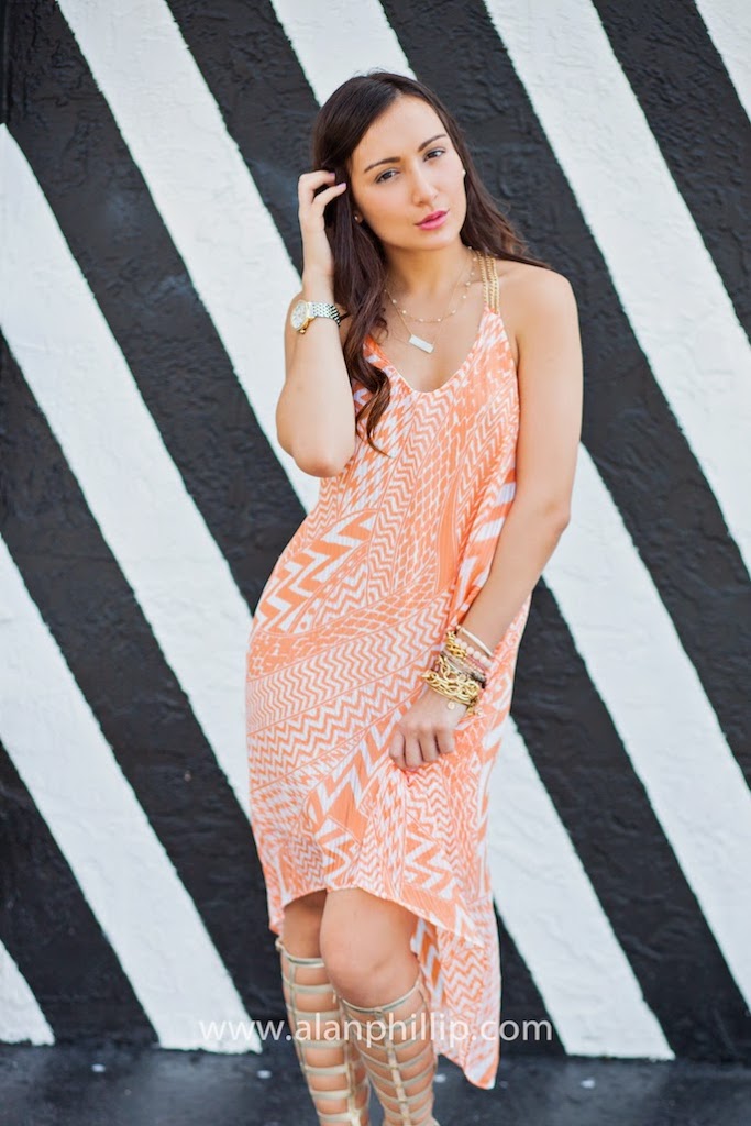You might be wondering why I have so many pictures for this post. Well, basically, my indecisive self could not decide which pictures were my favorites. They all are. But think of it this way… you get to see all the angles of this absolutely amazing dress! This dress is so comfortable, flirty and perfect for spring. I paired it with my favorite gladiators (go figure) and decided to take my Celine out for a spin… I actually did spin around, by the way. The pattern plus the gold chain detailing make this dress a perfect item to have for your spring and summer wardrobe and it’s super airy so you won’t have to worry about sweating in this really hot Miami weather. Dress it up or down but either way this is a spring must have and, actually, so is everything else at Splurge Boutique! Happy Saturday! Yay, weekend!