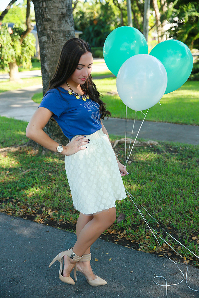 Top: Delias (love this) | Skirt: c/o Bliss Tulle | Necklace: c/o Accessory Jane | Shoes: Sam Edelman (similar) | Rings: c/o Wrenn Jewelry | Watch: Michele