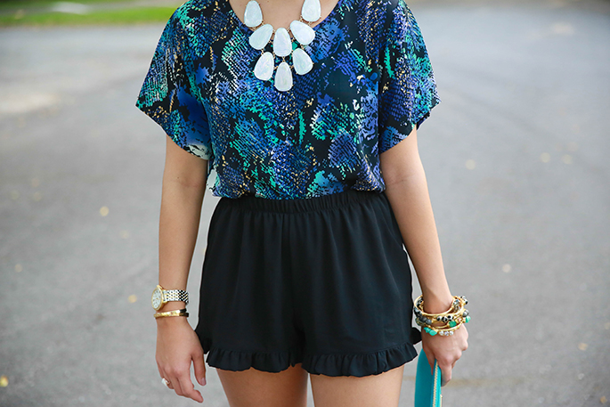 p15Top: Olivaceous (same style different color, love this one) | Shorts: Habit Boutique (love these) | Shoes: DV Dolce Vita | Clutch: c/o GiGi NY | Necklace: c/o Love Baby Frou Frou | Sunnies: Ray-Ban | Bracelets: c/o H.M. Willow, c/o TAudrey, c/o Bip and Bop | Rings: c/o Wrenn Jewelry | Watch: Michele | Lips: Mac Please Me