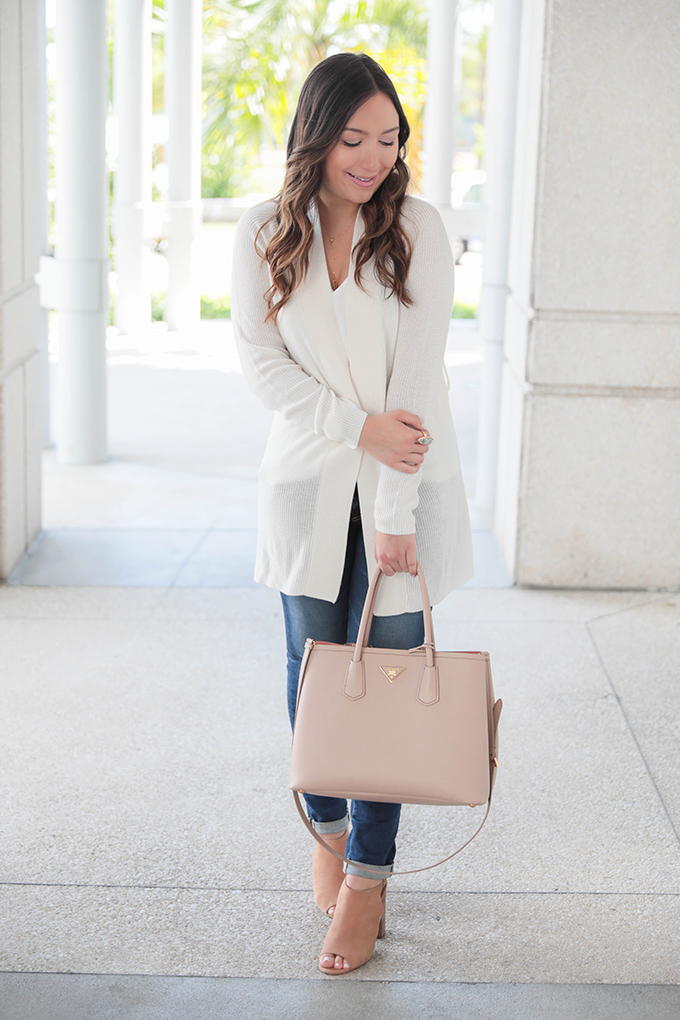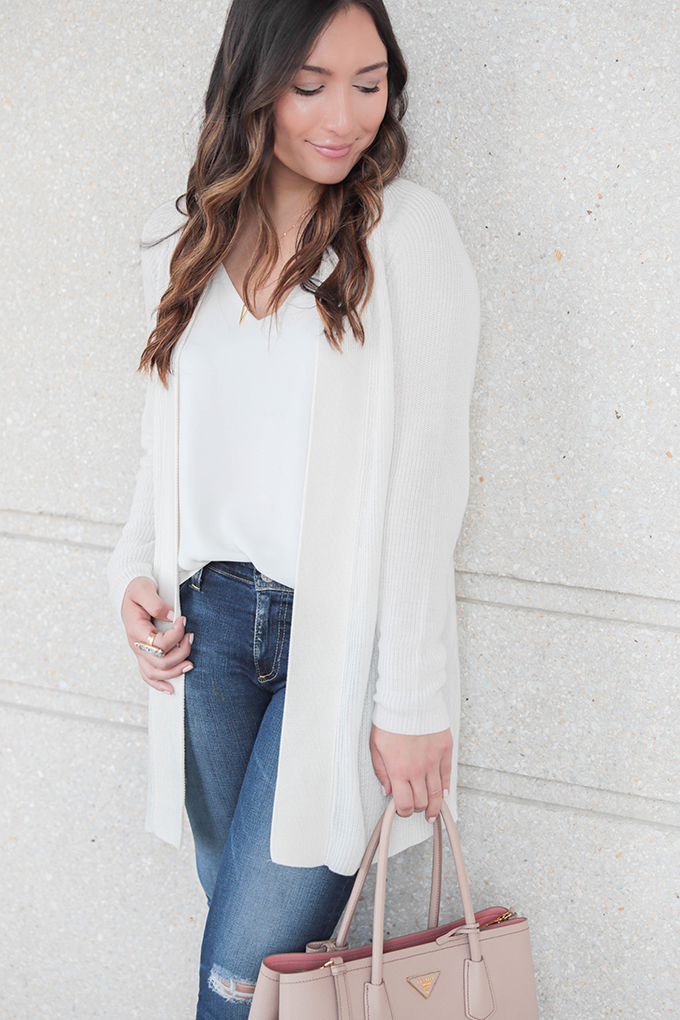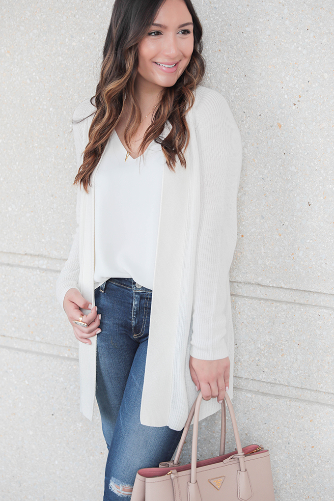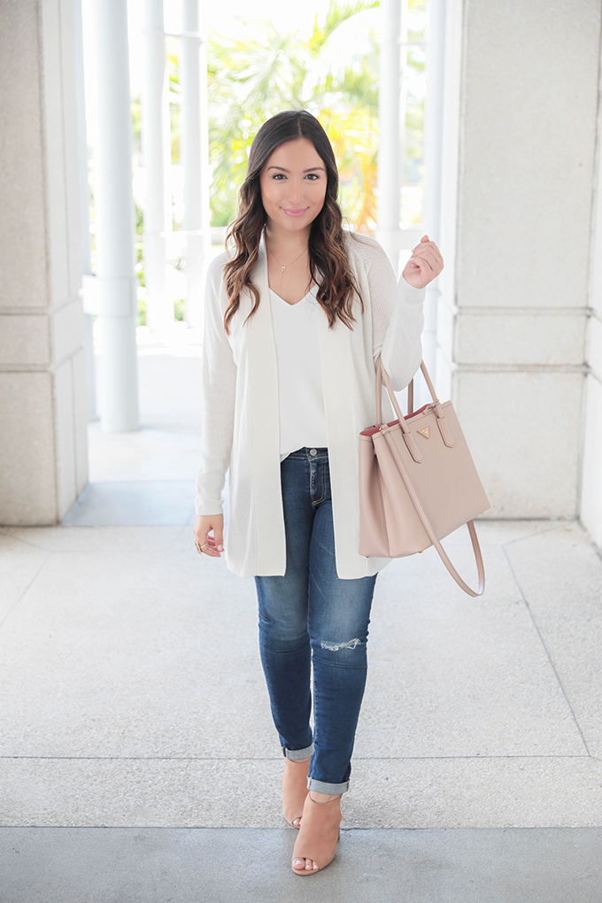 But, today I’m wearing my FAVORITE item and the one piece in my closet I know I’ll be wearing throughout all of fall and winter. I am the pickiest person when it comes to sweaters and cardigans, but this one is SO comfortable. It also comes in black, but I especially loved the winter white. You can wear it over a dress for work or church, with jeans (like I did) and you can either keep the belt on or remove it. I decided to take off the belt and wear it in a more casual way… since I usually dress pretty casually! This duster is seriously one fall item you need in your wardrobe. It’s cozy, classic and will go with everything.