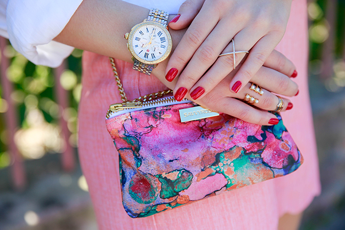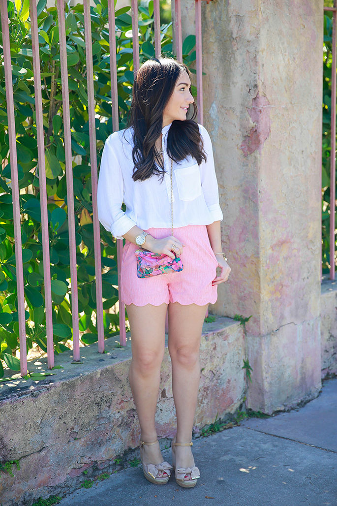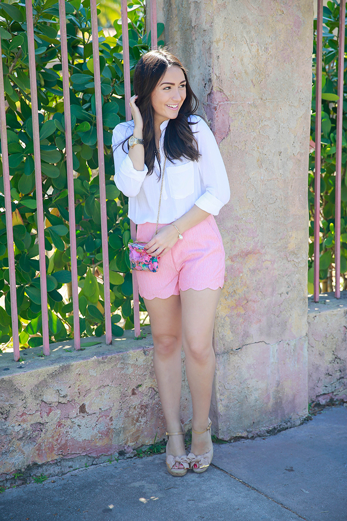 TOP: Bella Dahl c/o | SHORTS: Boutique Estella c/o | WEDGES: Tory Burch (old, similar styles here and here) | CROSSBODY: Savvy Root c/o | NECKLACE: BaubleBar (obsessed with this one and this one) | BRACELET: BaubleBar (currently on sale for $20!) | RINGS: BaubleBar here and here, Marshelly’s c/o | WATCH: Michele (also love this watch) | NAIL POLISH: ‘Sexyback‘ | LIPS: ‘Creme Cup‘