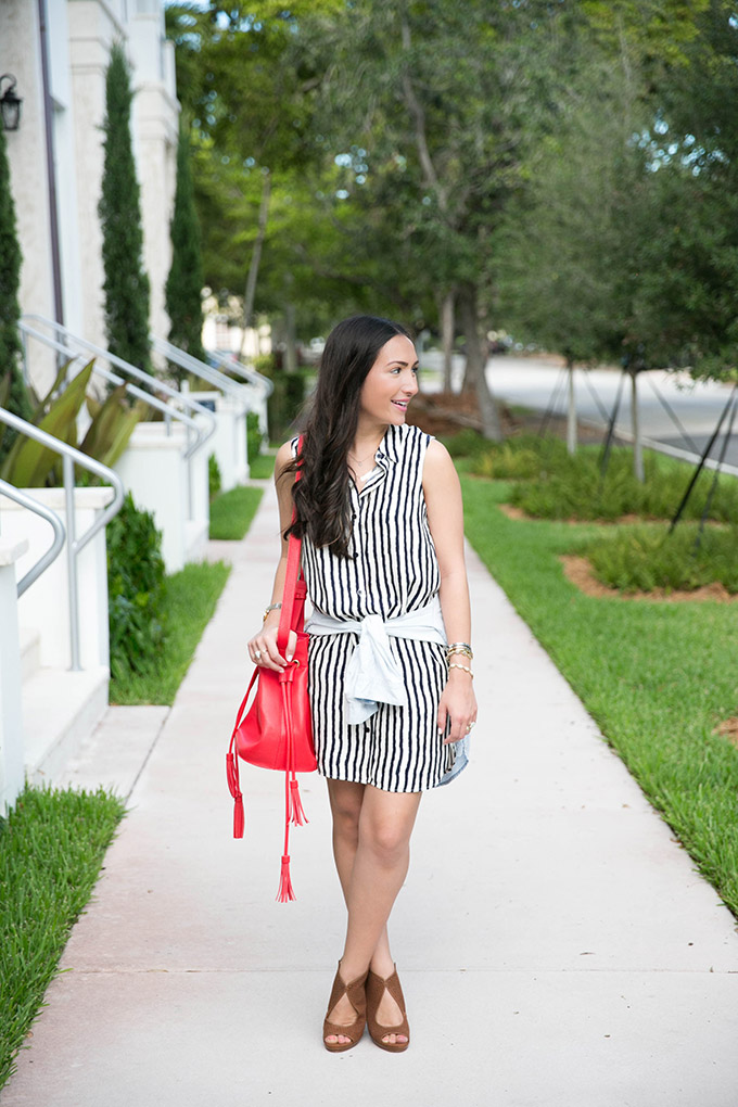 With the Fourth of July just around the corner, I thought it would be fun to put together an outfit that I think would be great for the occasion. This Wayf striped shirt dress is so comfortable, versatile and can be worn in several ways. I’ve already worn it with a thin belt, this chambray top wrapped around my waist and on its own! It’s really such a great dress and I love how soft it is. I mean, who doesn’t love soft dresses?
