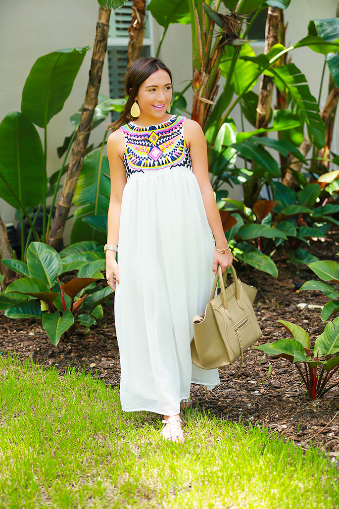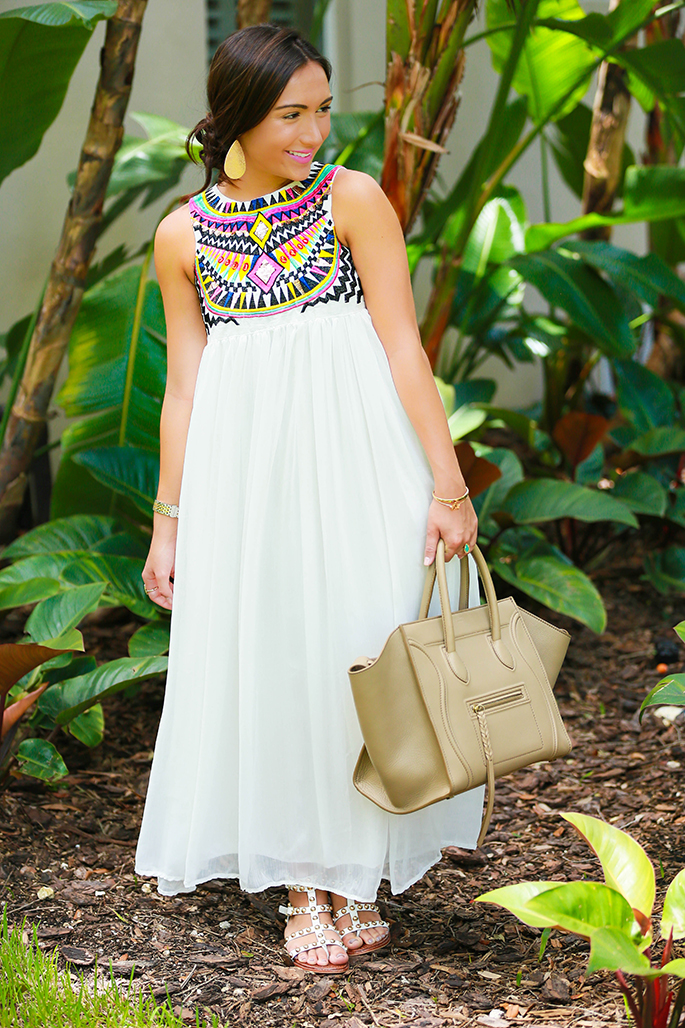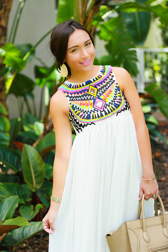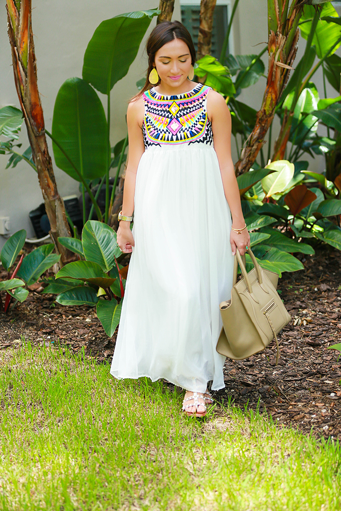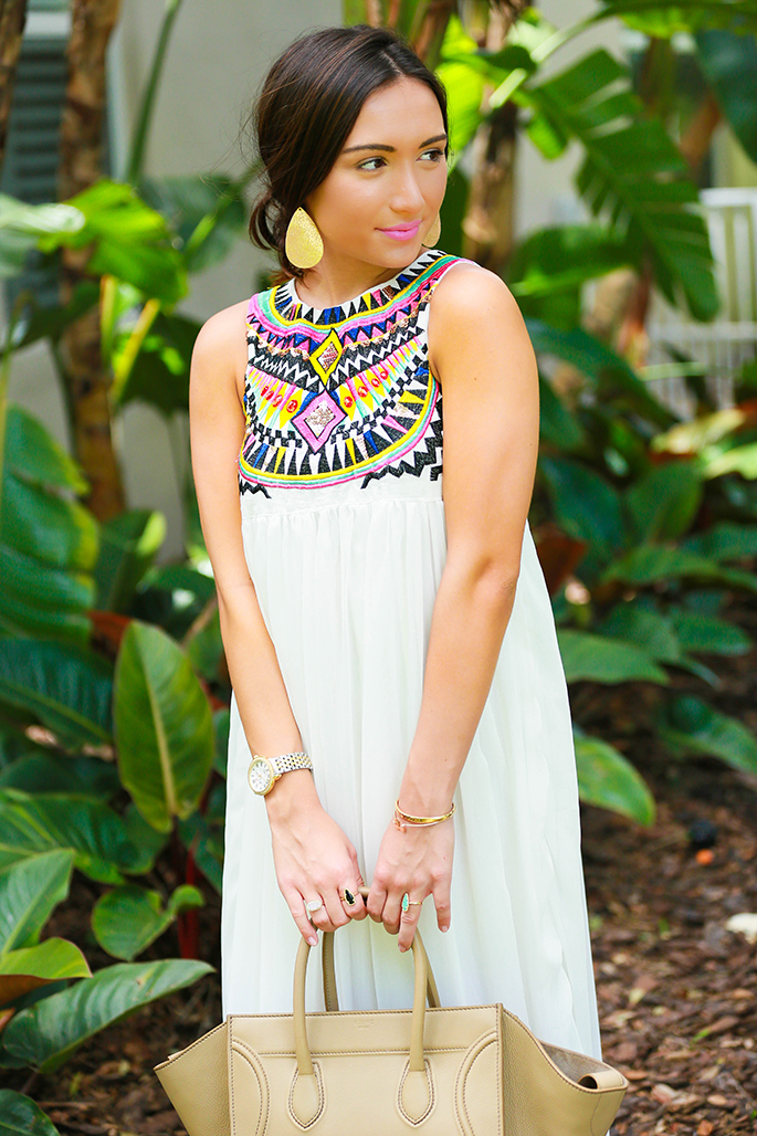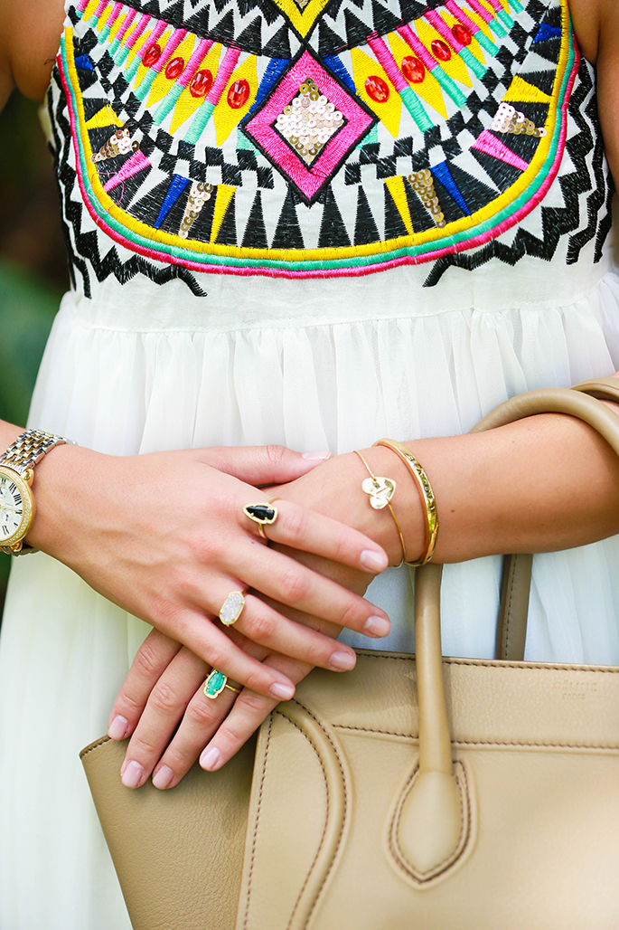 Dress: She Inside | Shoes: Sam Edelman (love these) | Purse: Celine (love this and this) | Earrings: c/o Nickel & Suede | Bracelets: c/o Wrenn Jewelry, c/o Just Vogue Jewels | Rings: Kendra Scott | Watch: Michele | Lips: Mac Saint Germain