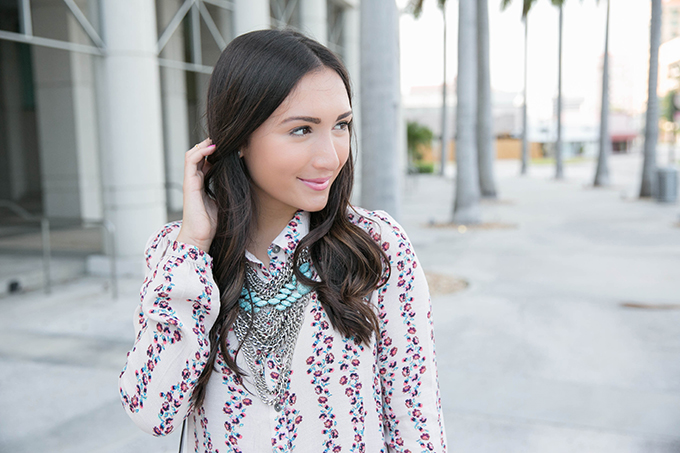 Clearly, I am all about the feminine silhouettes and neutral palettes lately. This shirt dress is no excuse. I had been eyeing it for a while and decided to just get it. When I tried it on, it was love at first… fit? It’s so comfortable, flattering and has the perfect colors incorporated into its pattern! I decided to bring out the turquoise by wearing my necklace that I haven’t yet worn on TFD! Mind you, I’ve worn it all of the time… yet, have failed to actually photograph its beauty. I thought this was the best necklace for the perfect shirt dress because it really added a more casual, trendy feel to it.