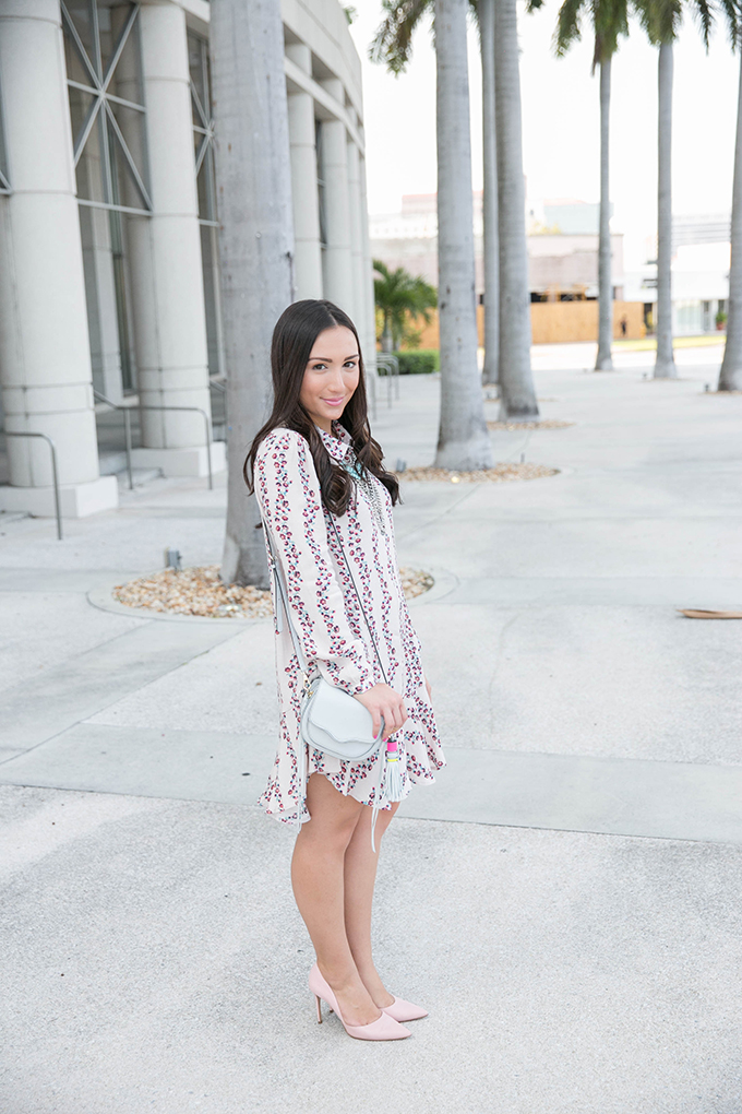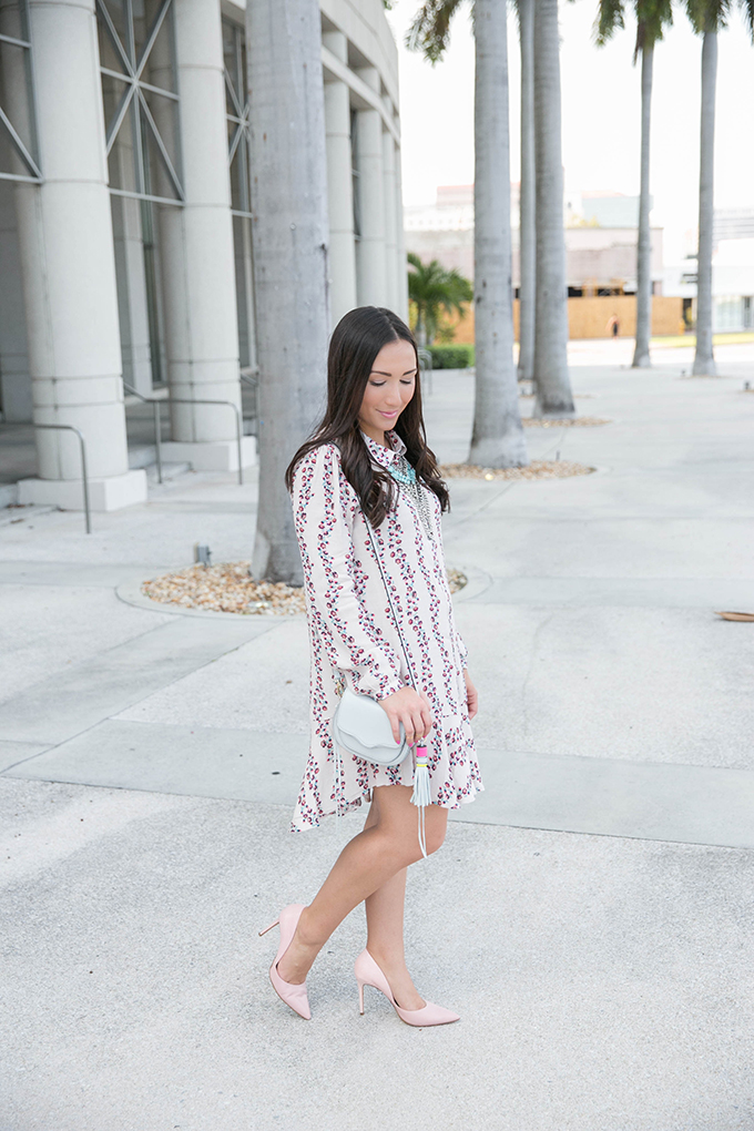 I decided to keep the pink palette throughout and wore my favorite (and most comfortable) pink pumps that go with just about everything in my closet. These are great pumps to invest in. They’re extremely comfortable and also come in black and brown. I personally love the blush color because I feel as if it goes with a lot and will always add a feminine touch to any outfit that I decide to wear with them. I just loved how they looked with my shirt dress, and I can’t wait to wear this combo again! Oh, and just for reference, I’m wearing a size small in the dress! I’m hoping it will look even better on when I finally decide to lay out in the sun and get a tan… one day. As soon as finals are over!