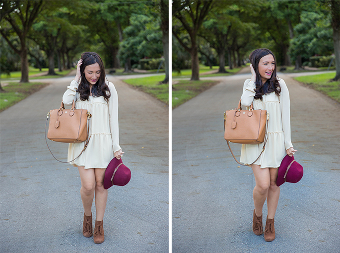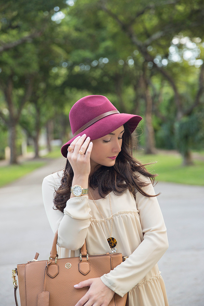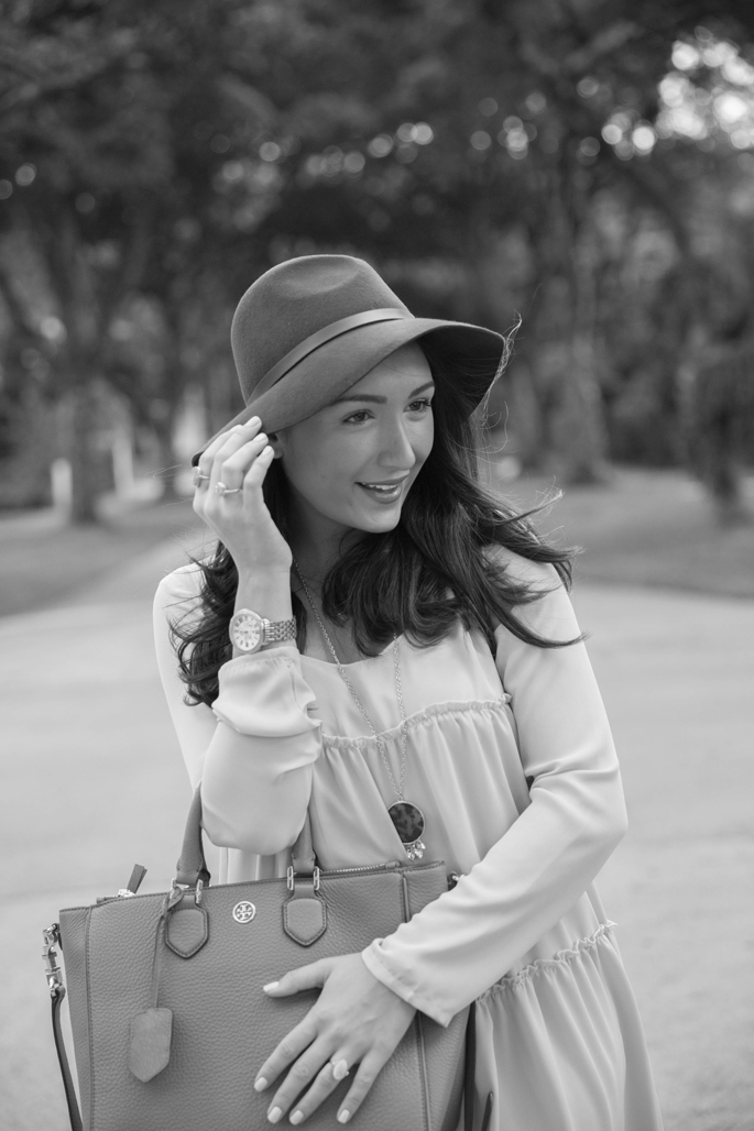 Dress: Tobi c/o | Booties: Dolce Vita | Purse: Tory Burch (my favorite) | Hat: Windsor Store | Necklace: Cents of Style c/o | Rings: Wrenn Jewelry c/o | Watch: Michele | Lips: YSL Rouge Volupte 9 (literally obsessed)