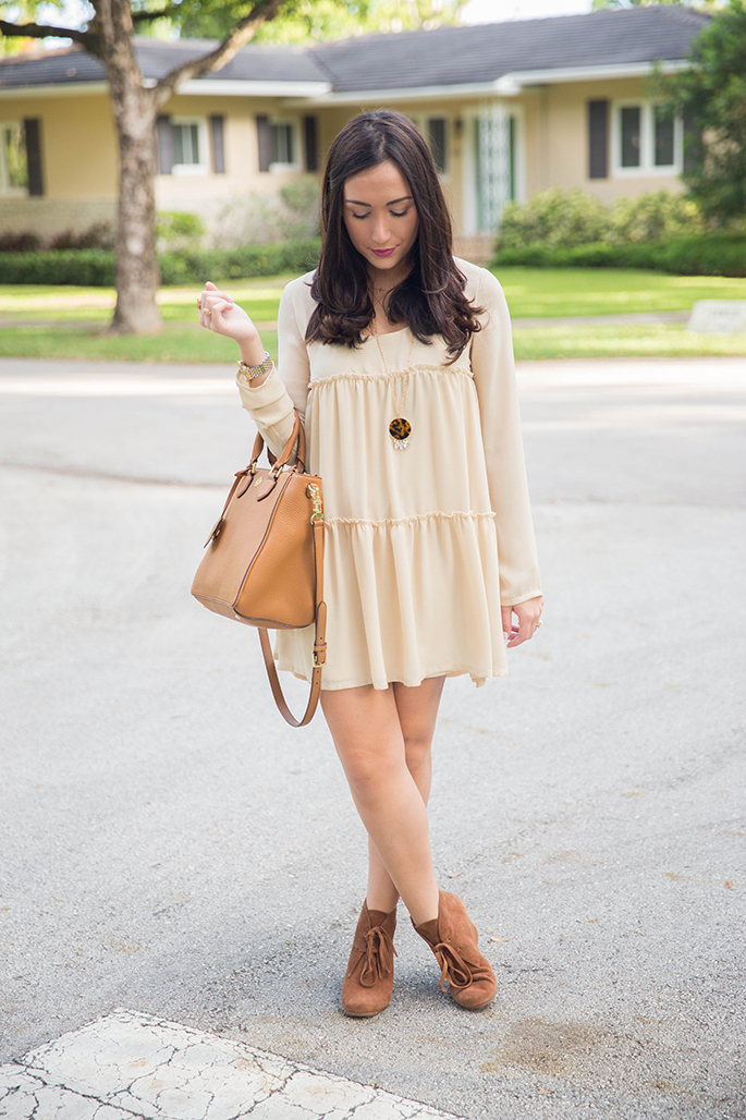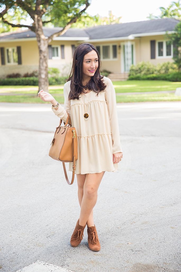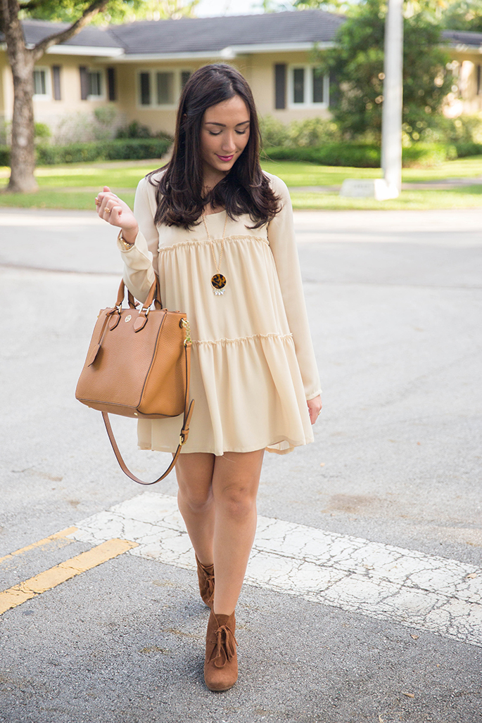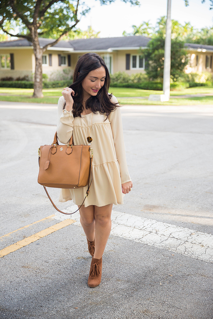 Today I’m super excited to show you my first look to kick off my collaboration with Tobi. If you don’t know the website Tobi, then you’ll thank me later for introducing it to you! This is the most amazing and affordable (not to mention everything is so well-made and beautiful) website with different finds from fancy dresses to printed shorts. It has absolutely everything. I discovered Tobi about a year ago and am clearly really really excited and humbled to have been granted the opportunity to work with them. I picked out this dress for my first look because it’s thin enough to withstand Miami temperatures, yet it still yells out fall. And, not to mention, it is probably the most comfortable dress I own. I also love that it has the babydoll look to it, so you can even pair it with leggings! My favorite part about this daytime look is my tortoise shell necklace from Cents of Style. I love how it completes the outfit while adding a little glam to the dress. I also decided to pair the dress with a wool hat, some neutral booties and my favorite Tory Burch bag. I could also see it paired with heels and a statement necklace for going out at night. Not only will you find this dress on their site but you’ll also find a bunch of amazing pieces. Best part? Right now, the whole site is 50% off with the code ‘bedhead’ until October 29. And if you’re a first-time customer, you’ll get 50% off on your first purchase! I always appreciate a great shop that provides great quality at a price that won’t break the bank, especially when you’re on a budget!