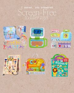 Okay, clearly we’re all struggling to find things that will help us keep our littles screen-free during meals. I asked on IG and you guys came through with some really good ideas for screen-free toddler ideas!