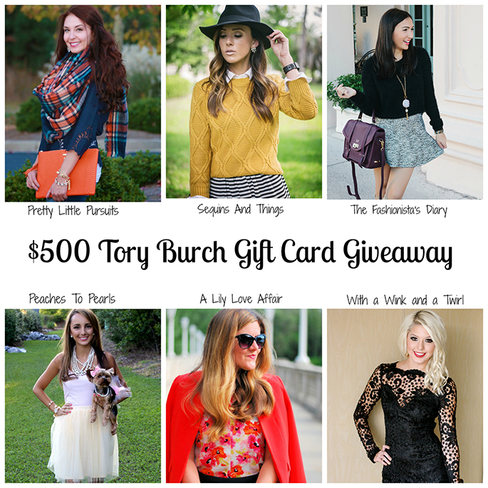 I am super excited to be teaming up with a group of amazing girls to give one lucky winner a $500 Tory Burch gift card. Umm… can we say, amazing?! There are so many gorgeous pieces available on the site and, with this gift card, some of them could be yours! The giveaway will end on November 3rd so make sure to scroll down to see my personal favorites as well as how you can enter to win! Tory Burch is probably my favorite brand so, if it were up to me, I would buy the whole entire store. Enter and make sure to follow along on Instagram to catch up with all of us and see our personal faves! What would you get with 500 dollars to Tory Burch?